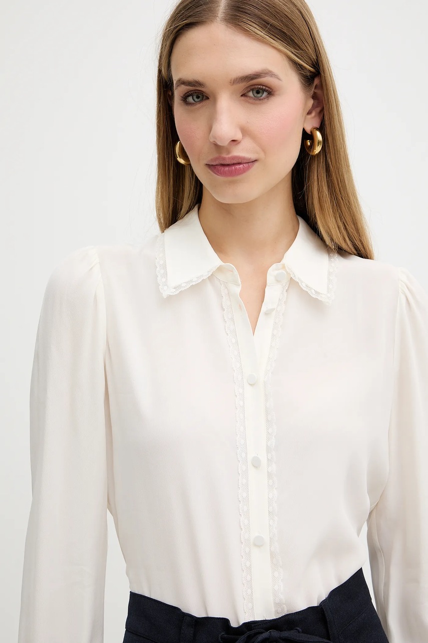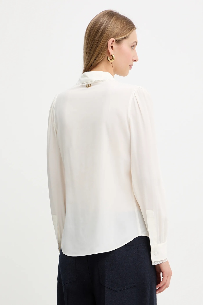 Twinset koszula z dodatkiem jedwabiu damska kolor beżowy regular z kołnierzykiem klasycznym 252TT2142