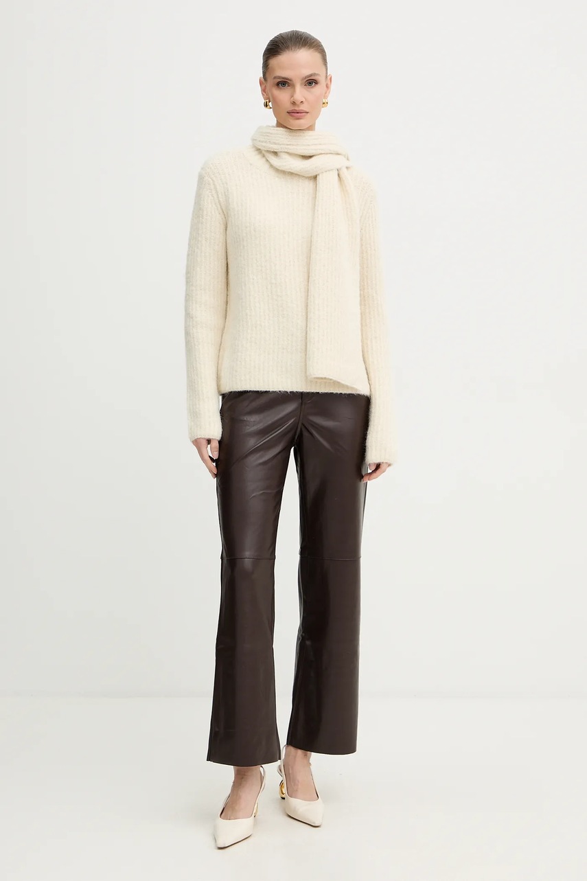 Morgan spodnie damskie kolor brązowy proste high waist PEMPER