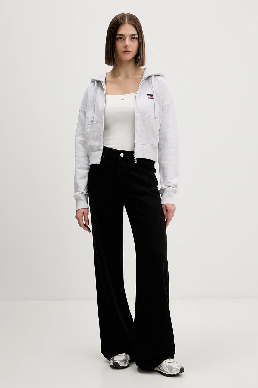 Tommy Jeans bluza bawełniana damska kolor szary z kapturem melanżowa DW0DW21976