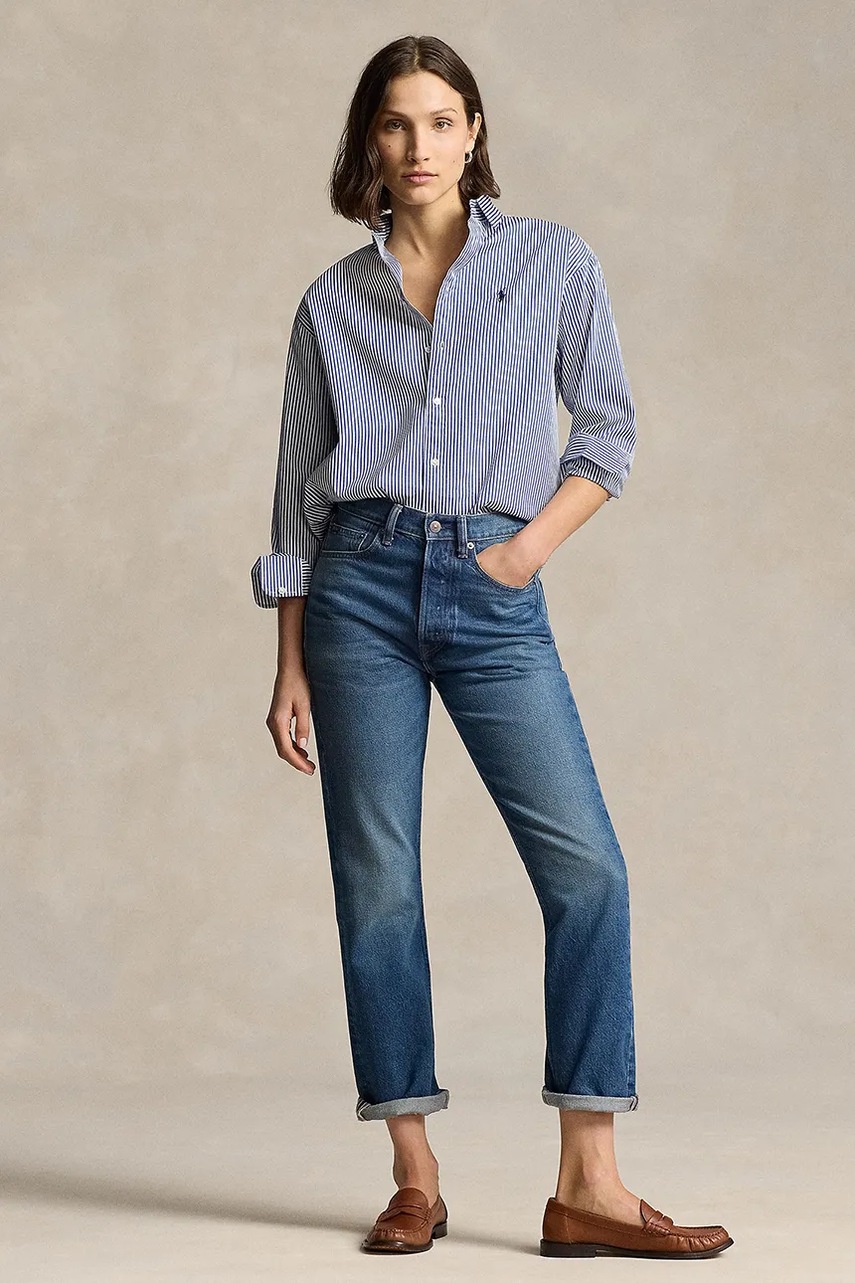Polo Ralph Lauren koszula bawełniana damska kolor niebieski relaxed z kołnierzykiem klasycznym 211910743