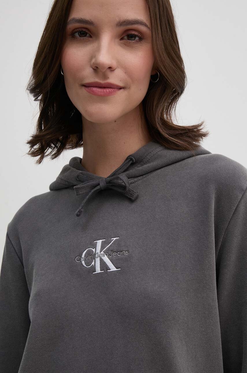 Calvin Klein Jeans bluza bawełniana kolor szary z kapturem z aplikacją J20J223534