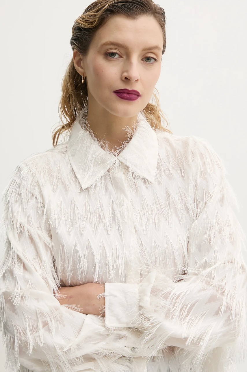 Bruuns Bazaar koszula damska kolor beżowy regular z kołnierzykiem klasycznym BBW4397