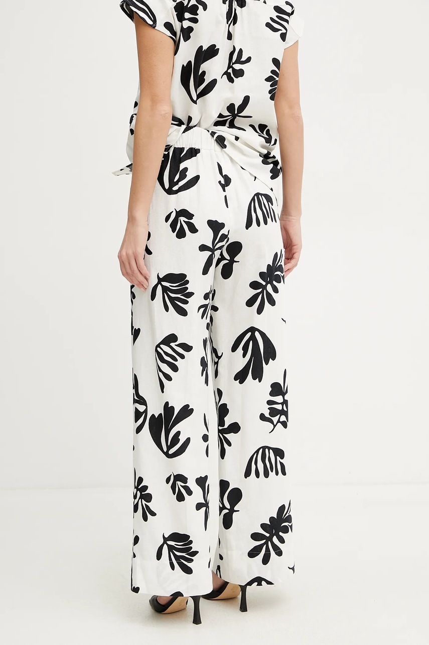 Marella spodnie lniane ANTIOPE damskie kolor biały szerokie high waist 2513131222200