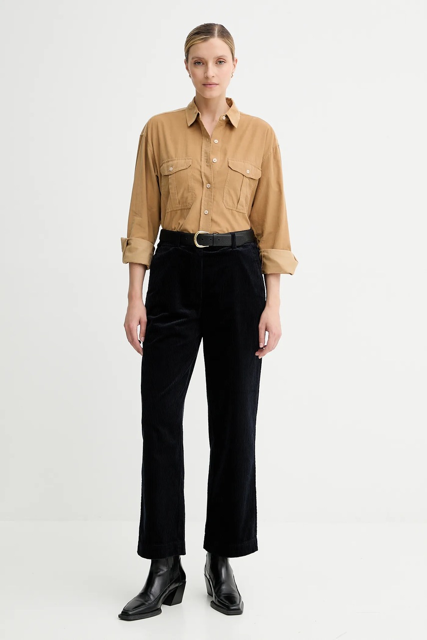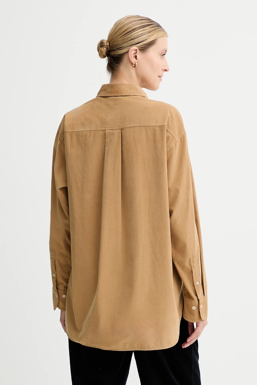 Marc O'Polo koszula sztruksowa damska kolor beżowy relaxed z kołnierzykiem klasycznym 508088242173