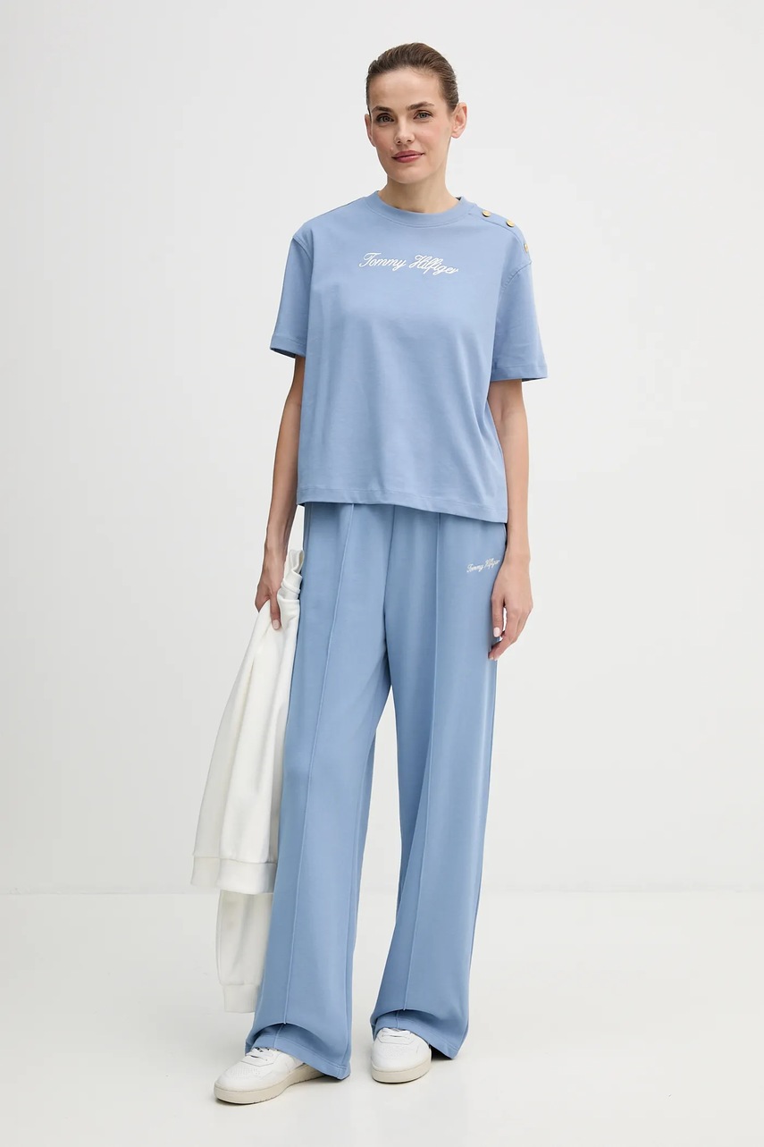 Tommy Hilfiger spodnie dresowe bawełniane damskie kolor niebieski z aplikacją WW0WW48784