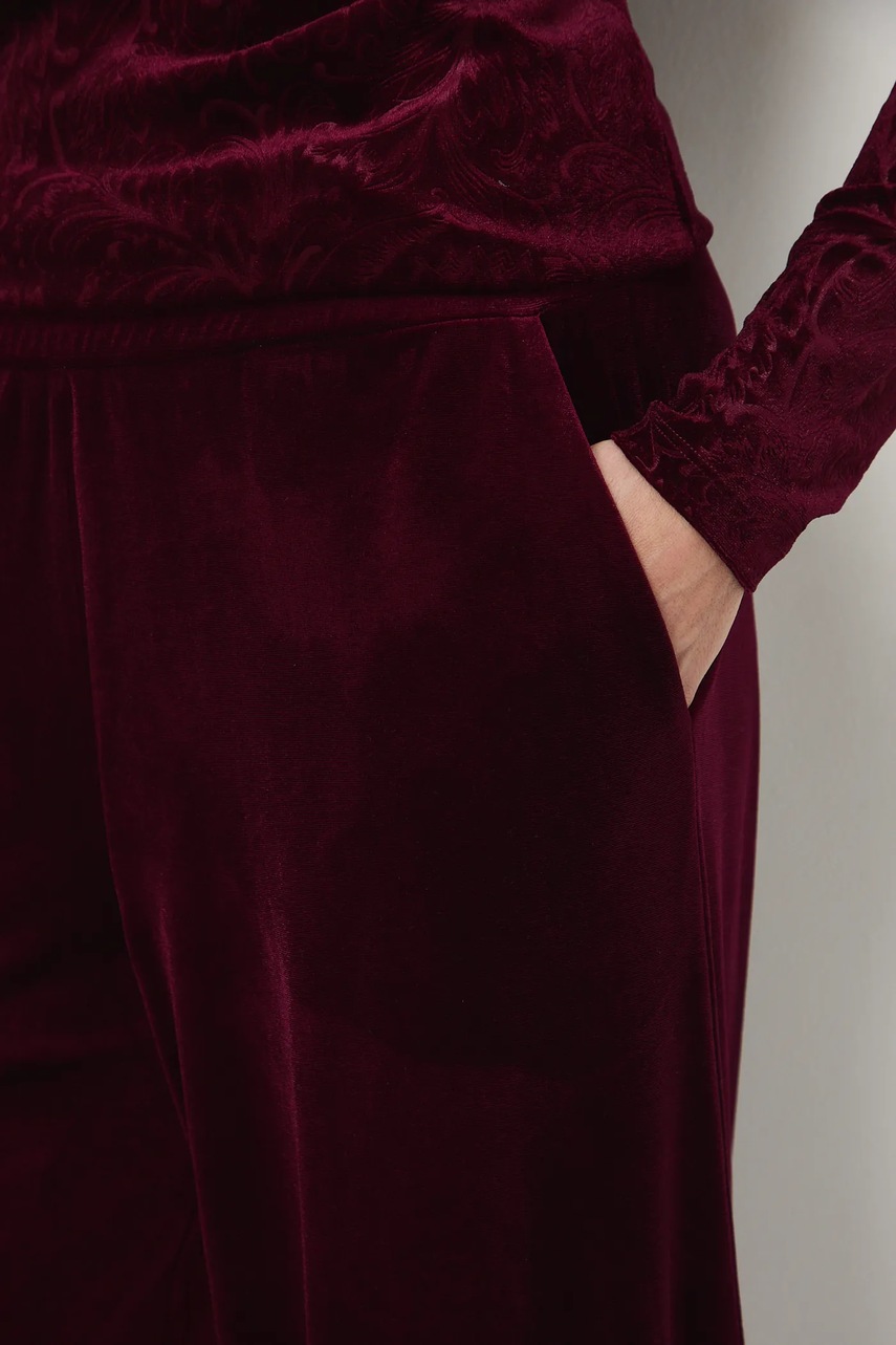 Medicine spodnie damskie kolor bordowy szerokie medium waist