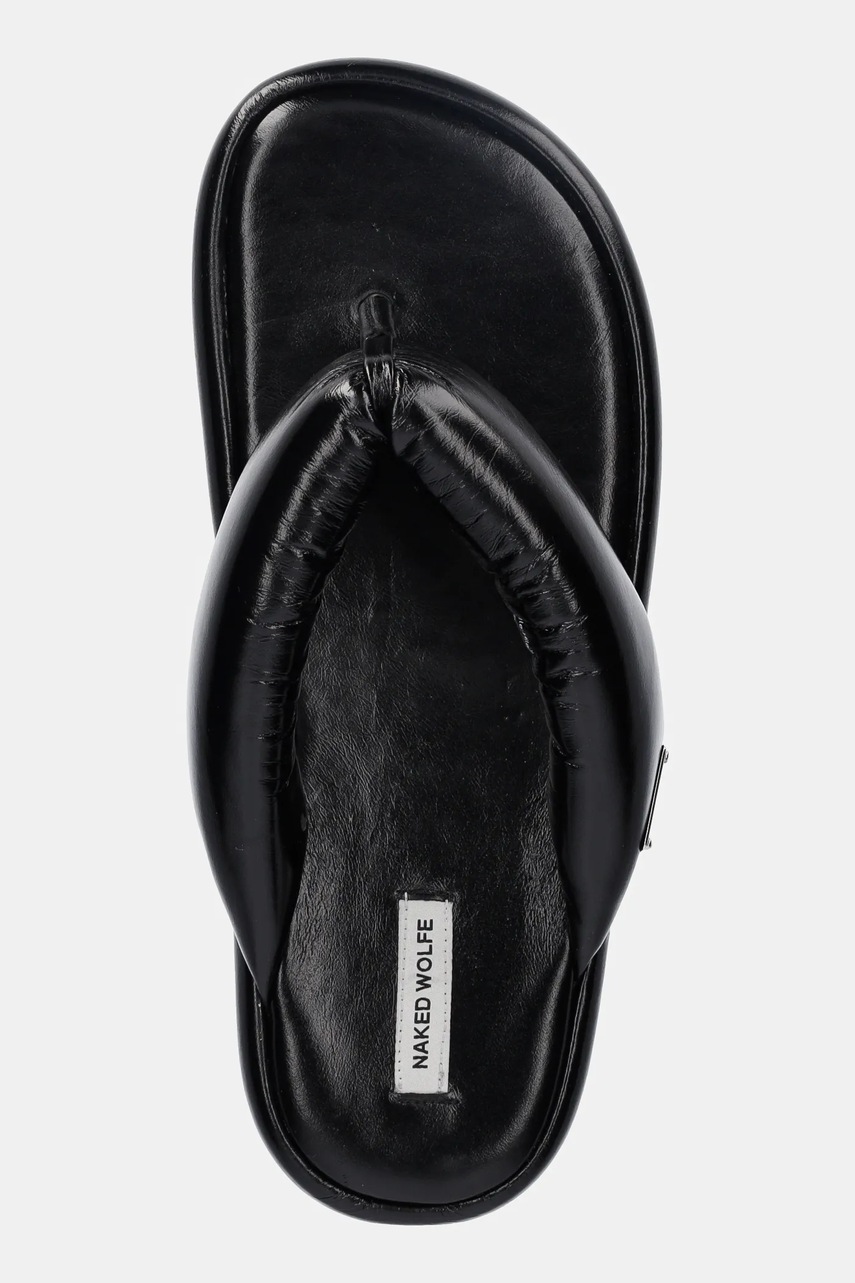 Naked Wolfe japonki skórzane Hilary damskie kolor czarny na płaskim obcasie Hilary Black Leather