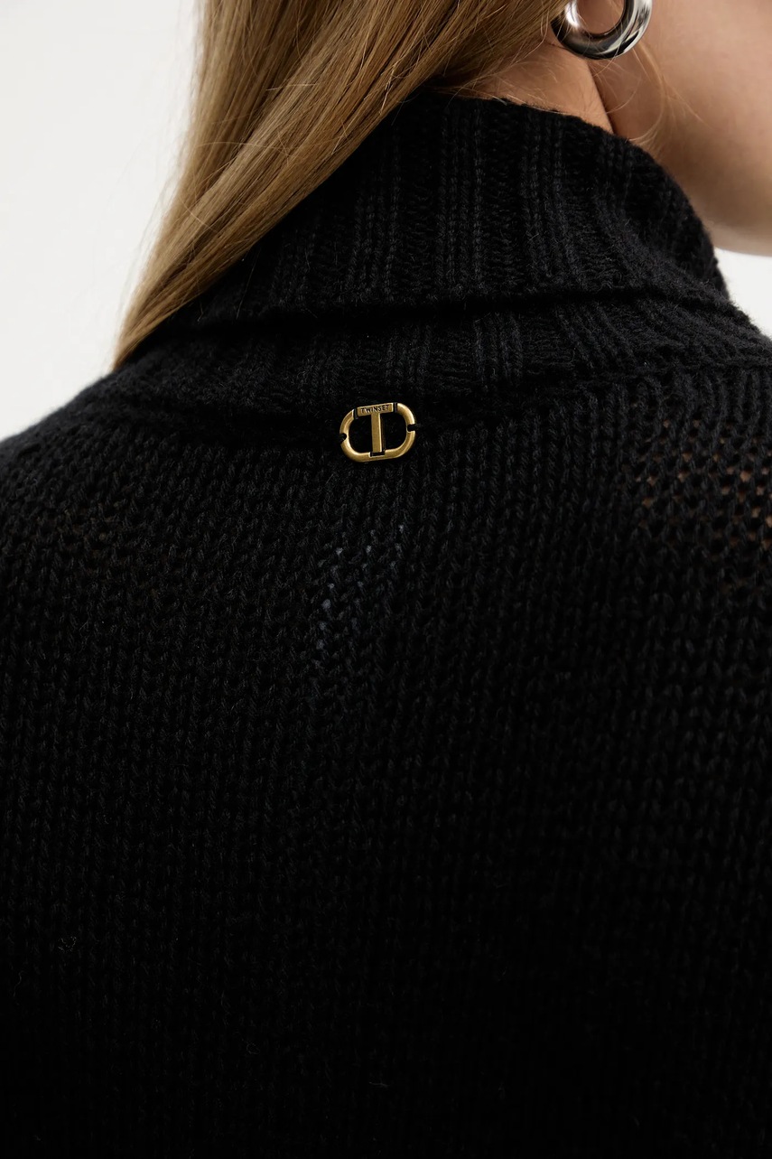 Twinset sweter z dodatkiem wełny damski kolor czarny ciepły z golfem 252TT3424