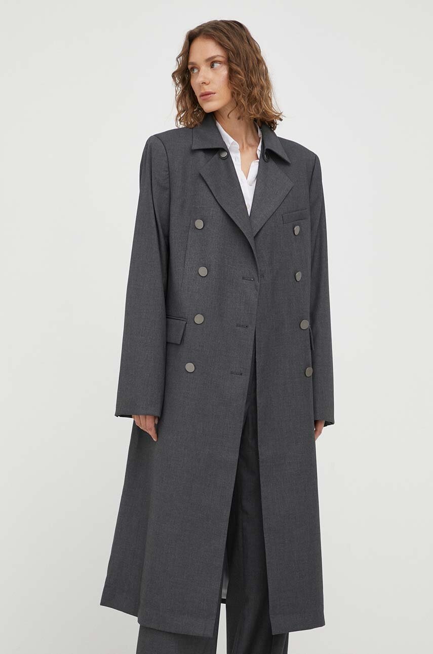 Remain płaszcz damski kolor szary przejściowy dwurzędowy