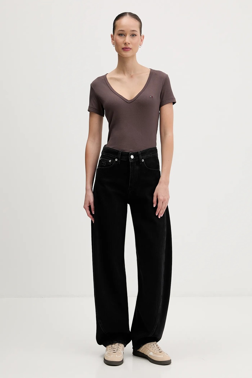 Tommy Jeans t-shirt damski kolor brązowy DW0DW17385