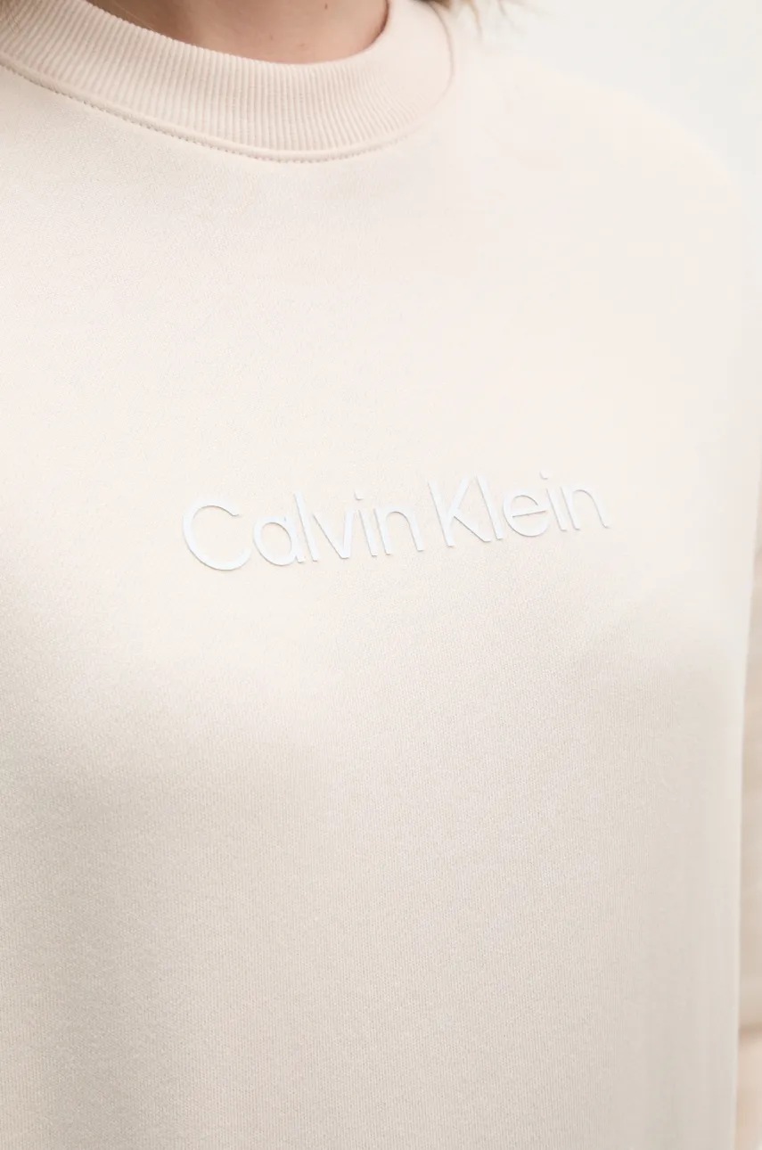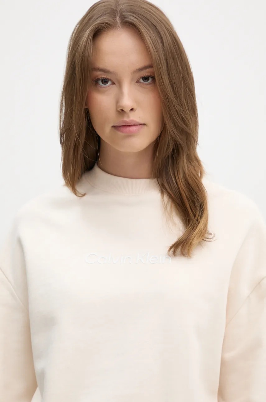 Calvin Klein bluza bawełniana damska kolor beżowy z nadrukiem