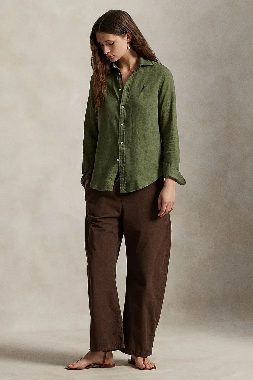 Polo Ralph Lauren koszula lniana kolor zielony relaxed z kołnierzykiem klasycznym 211970730