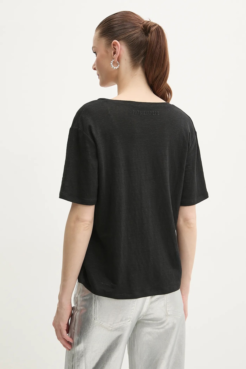 Patrizia Pepe t-shirt lniany damski kolor czarny 2M4459 J291