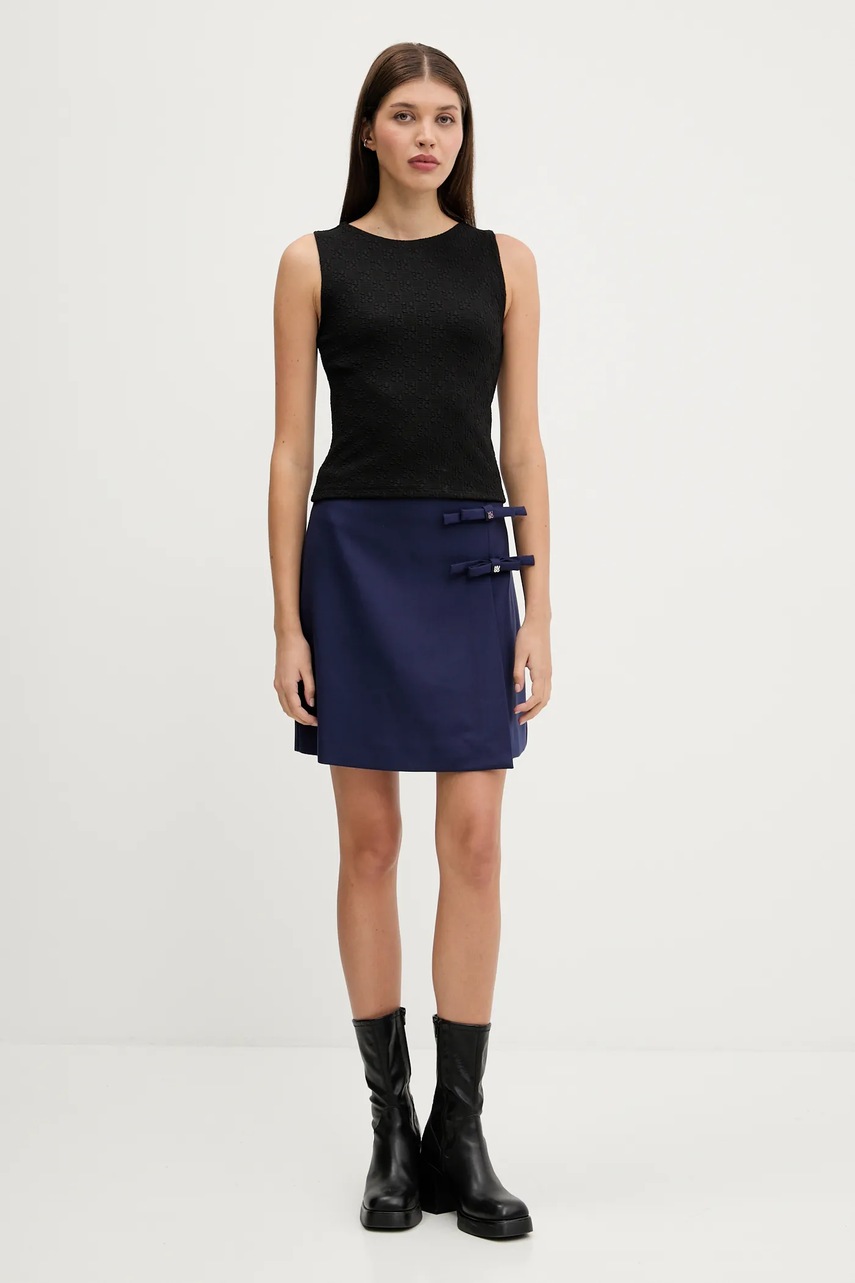 HUGO spódnica z domieszką wełny kolor granatowy mini rozkloszowana 50544796