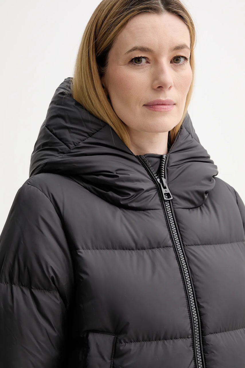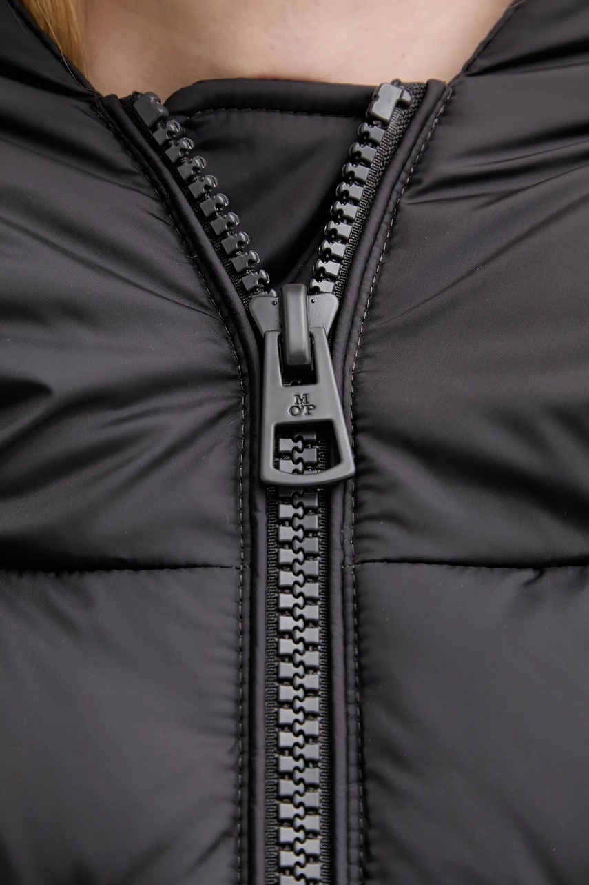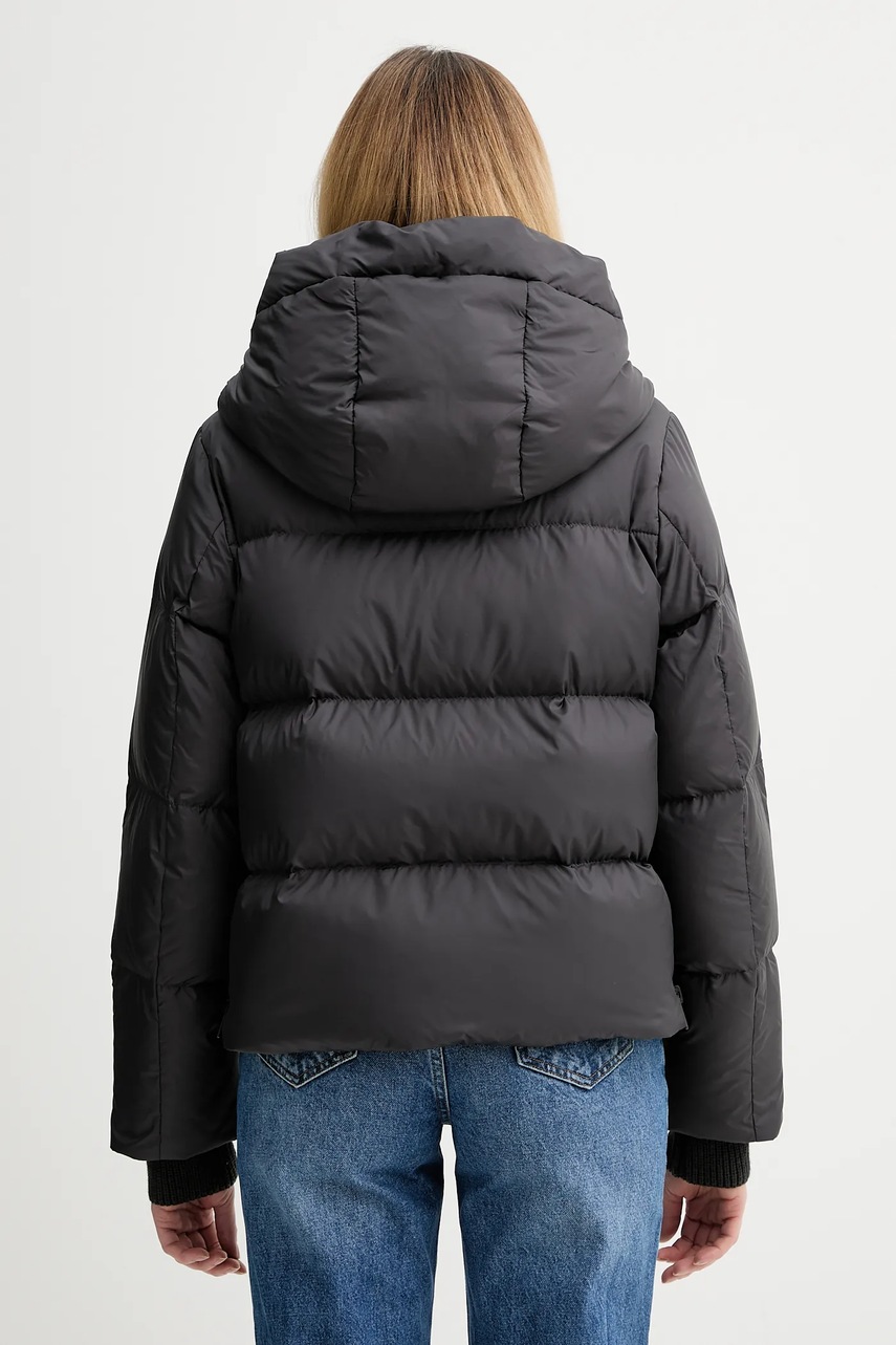 - Podwyższony kołnierz i nieodpinany kaptur gwarantują dodatkową ochronę przed chłodem.