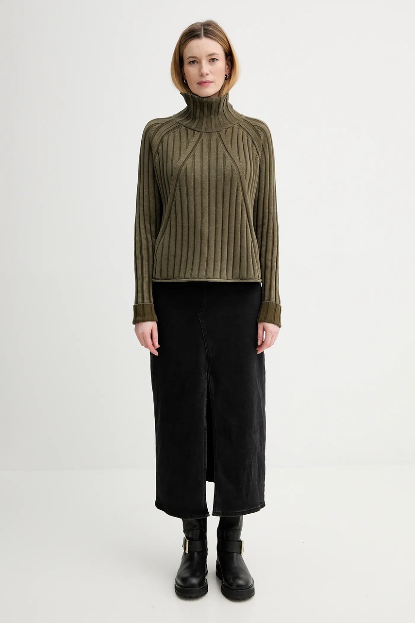 G-Star sweter bawełniany 0 damski kolor zielony z golfem D27172.D630