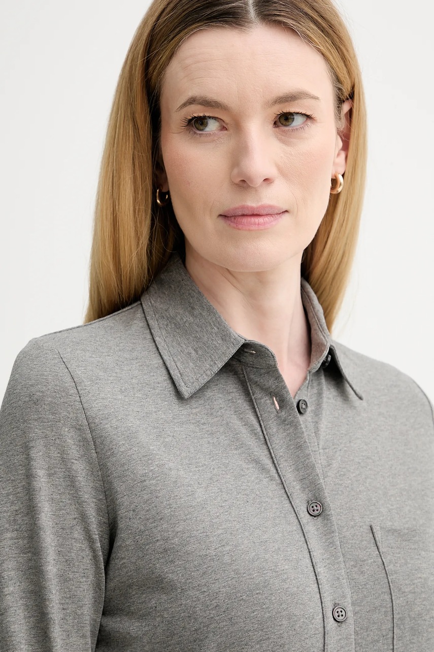 Marc O'Polo koszula damska kolor szary regular z kołnierzykiem klasycznym 600200152201