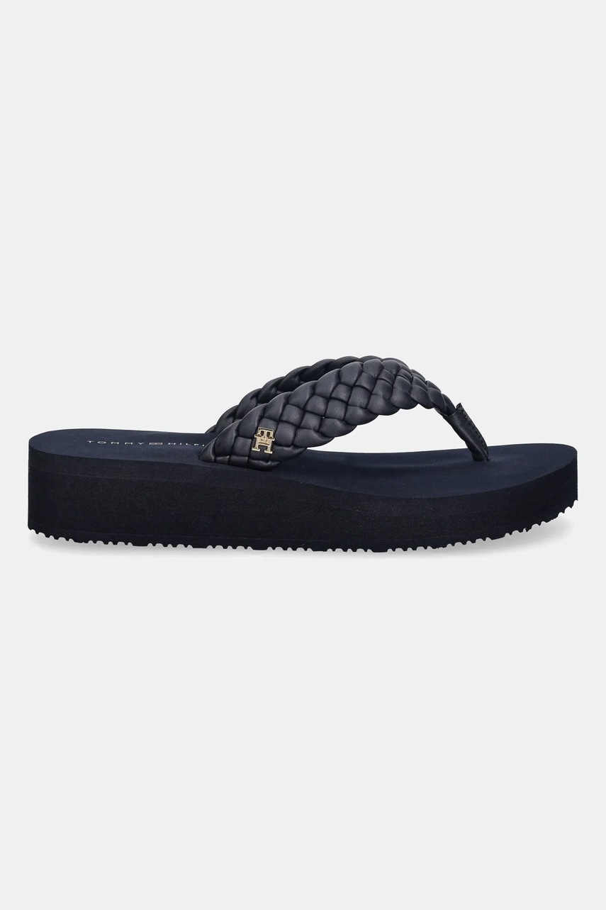 Tommy Hilfiger japonki TH WEDGE CORNROW BEACH SANDAL damskie kolor granatowy na koturnie FW0FW09037
