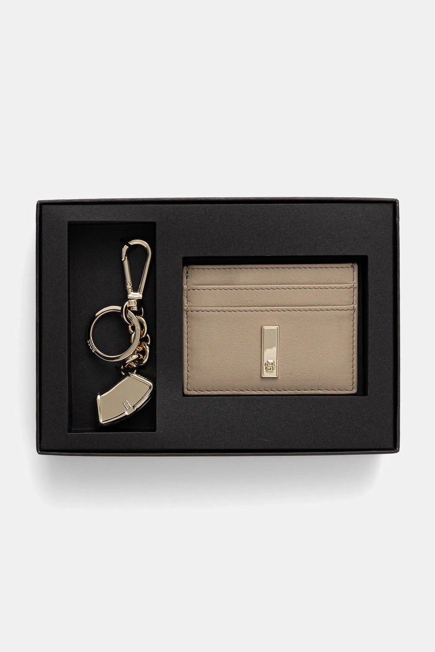 BOSS etui na karty skórzane kolor beżowy 50558140