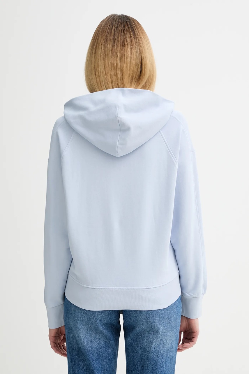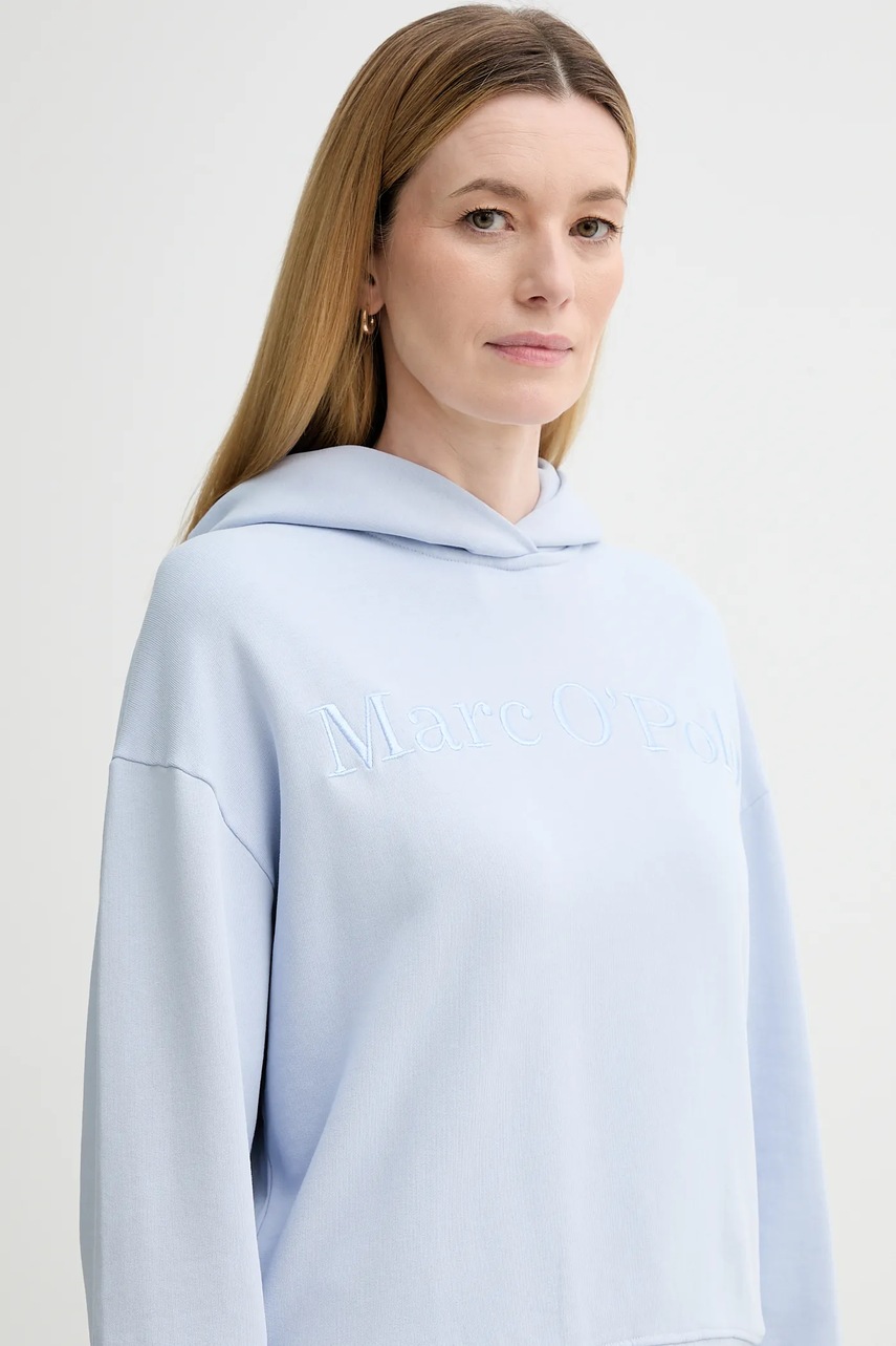 Marc O'Polo bluza bawełniana damska kolor niebieski z kapturem z aplikacją 600407354165