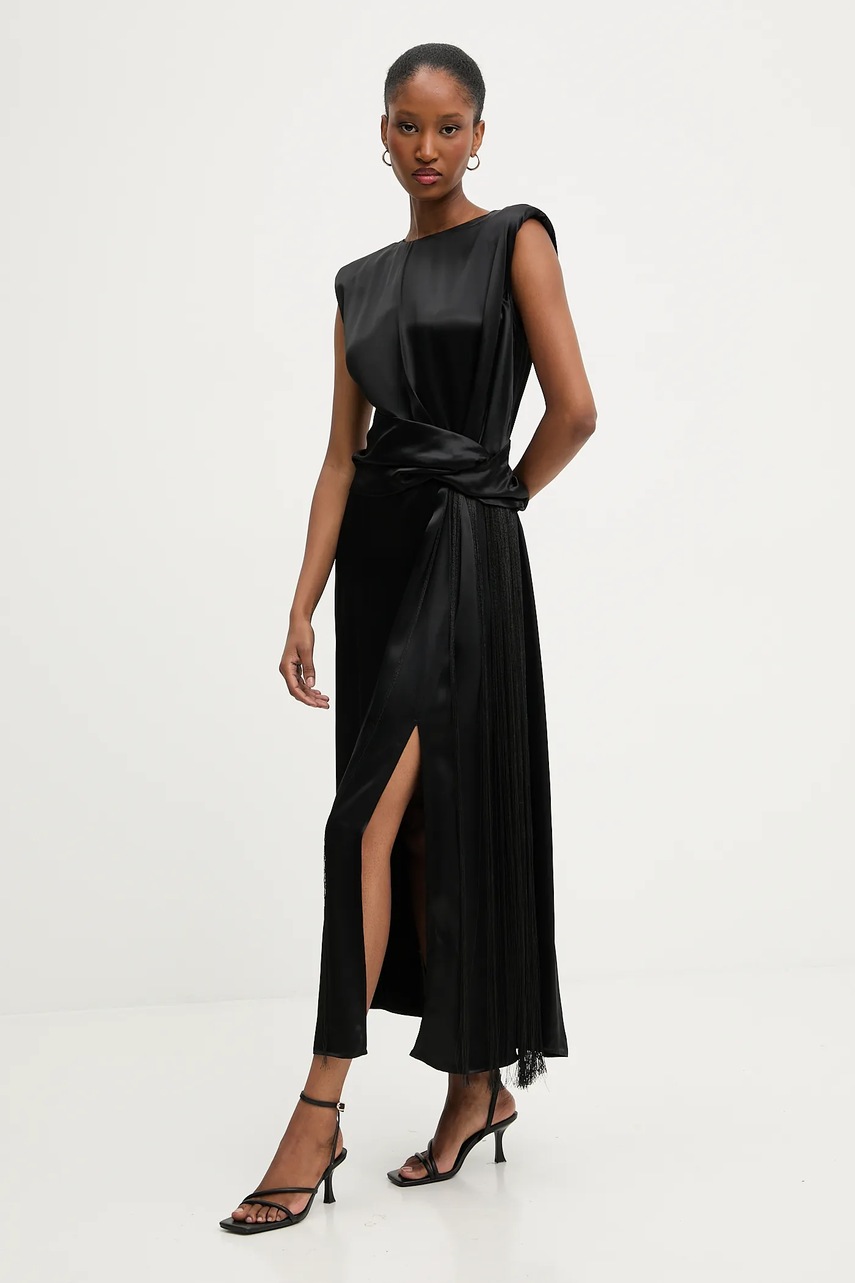 Answear.LAB sukienka kolor czarny midi rozkloszowana