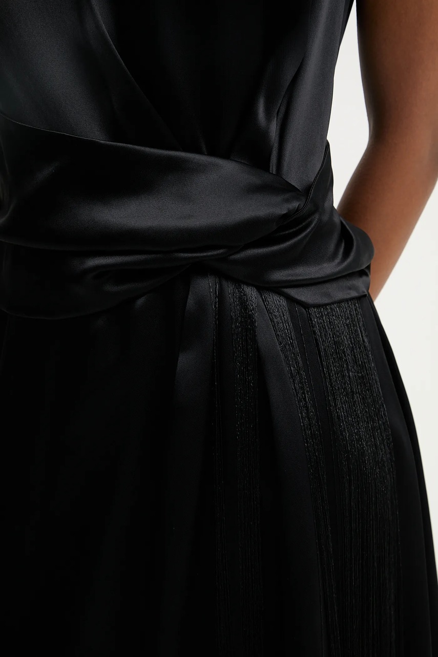 - Model z ozdobnymi frędzlami.