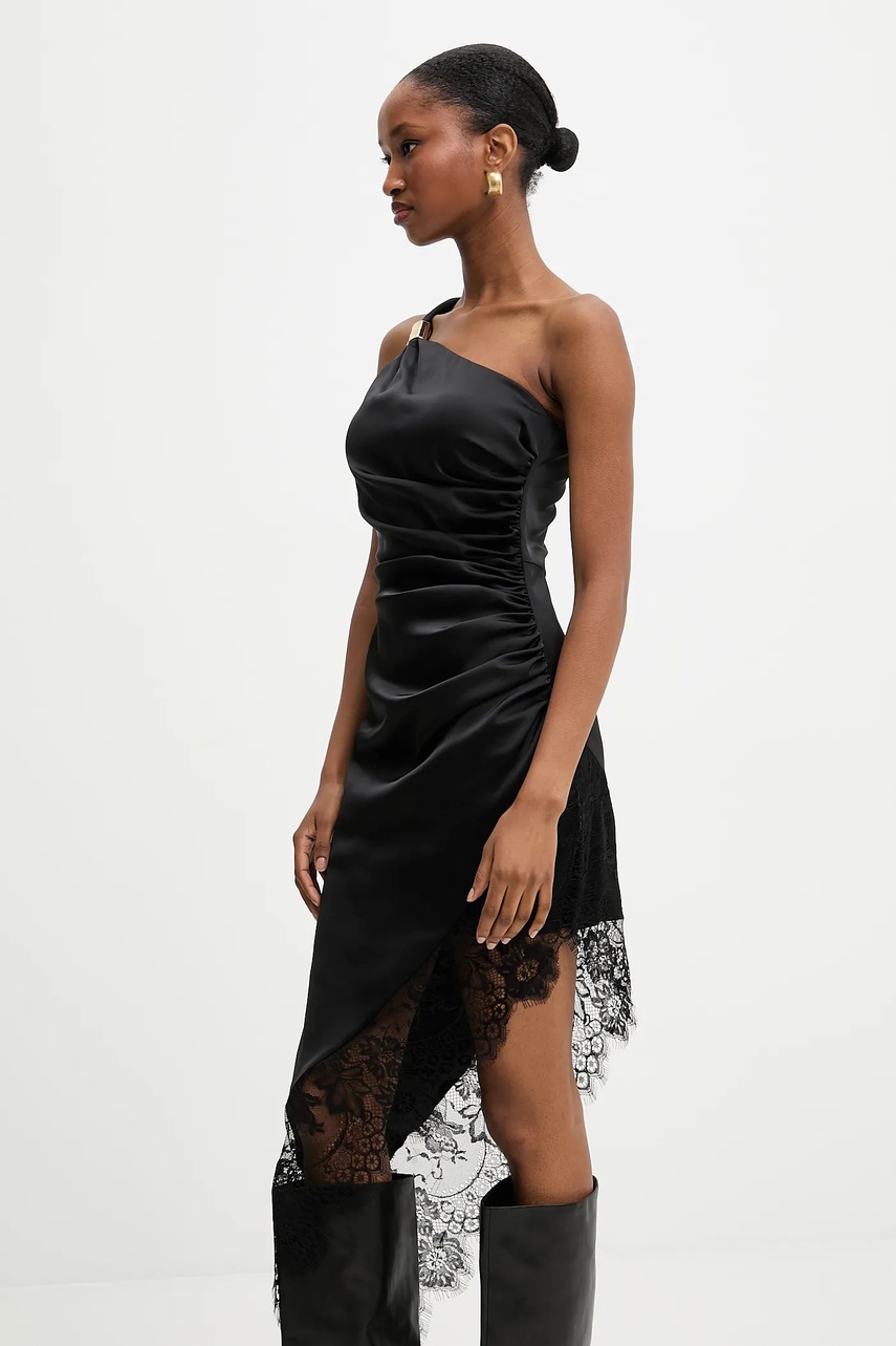 Answear.LAB sukienka kolor czarny midi dopasowana