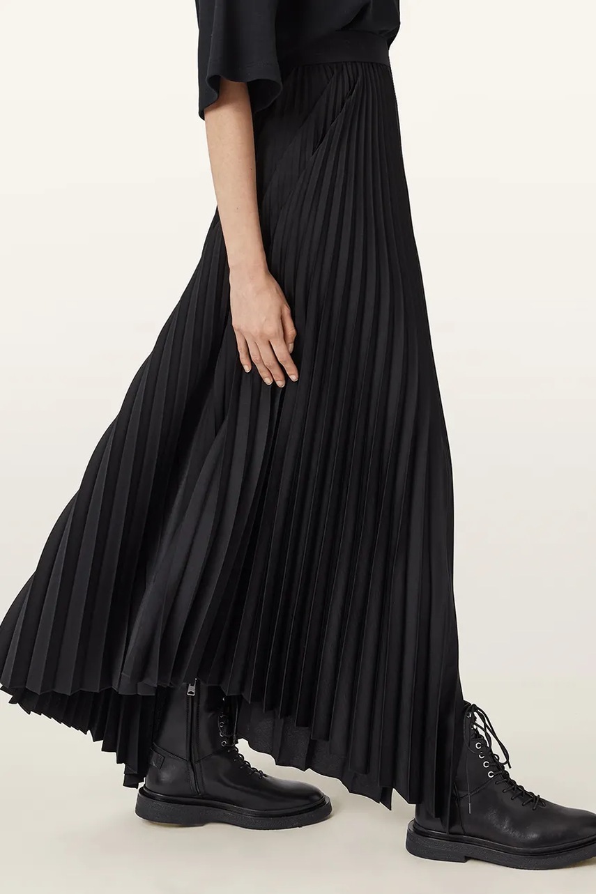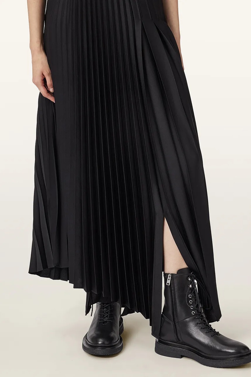 AllSaints workery skórzane Escher Lace Up Boot damskie kolor czarny na płaskim obcasie W084FD