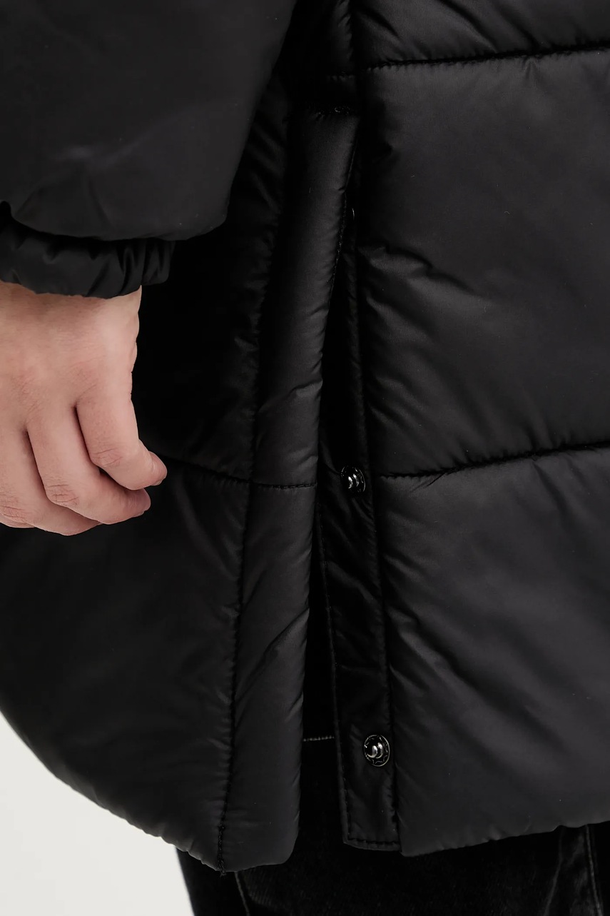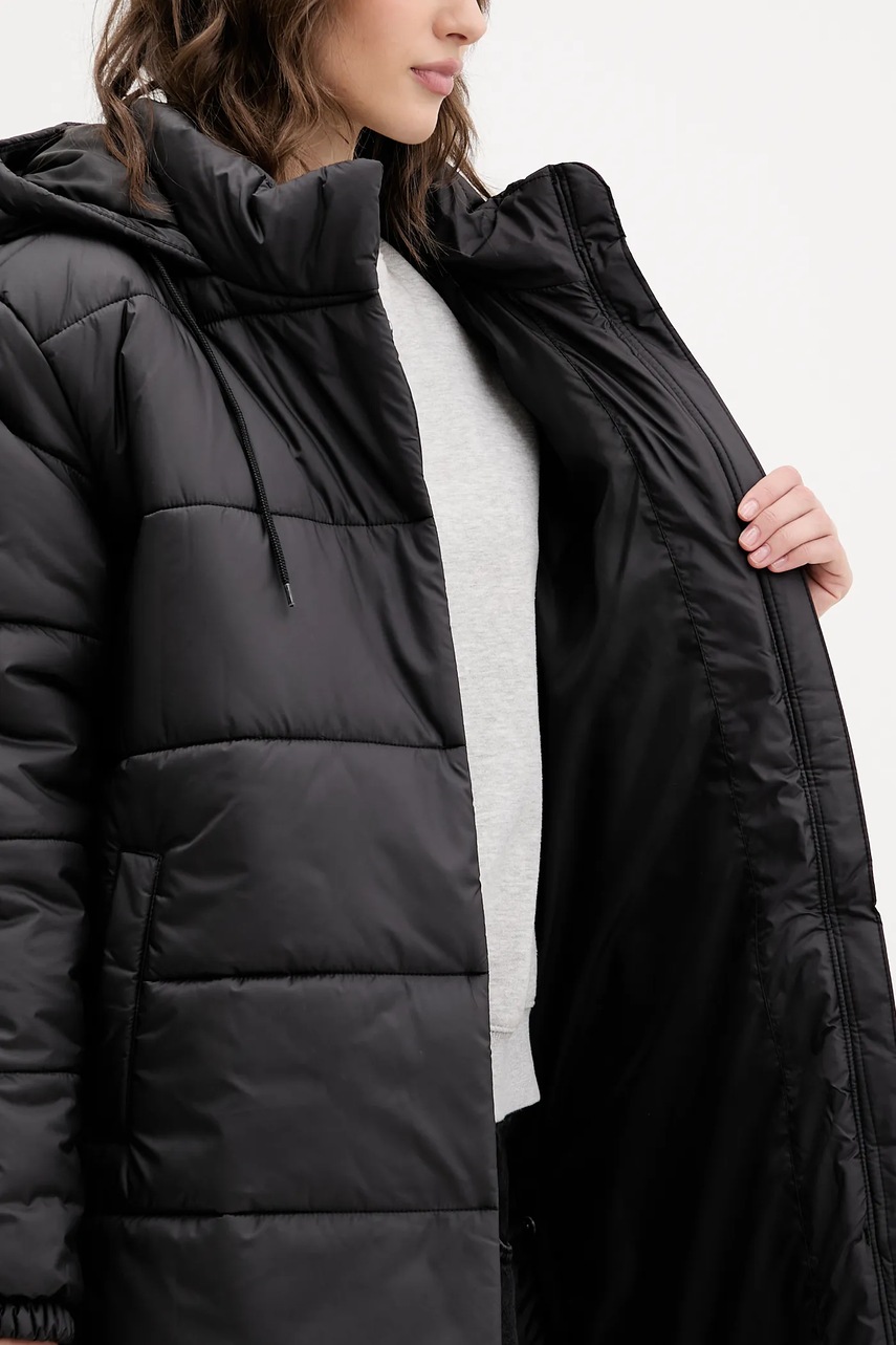- Podwyższony kołnierz i nieodpinany kaptur gwarantują dodatkową ochronę przed chłodem.
