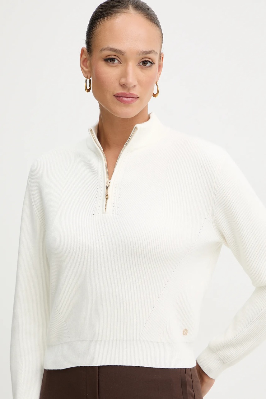 Guess sweter HARLEY damski kolor beżowy lekki z półgolfem W5BR29 Z0572