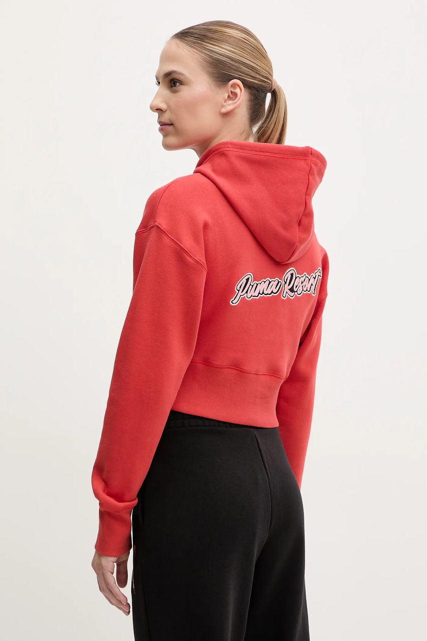 Puma bluza bawełniana damska kolor czerwony z kapturem gładka 629778