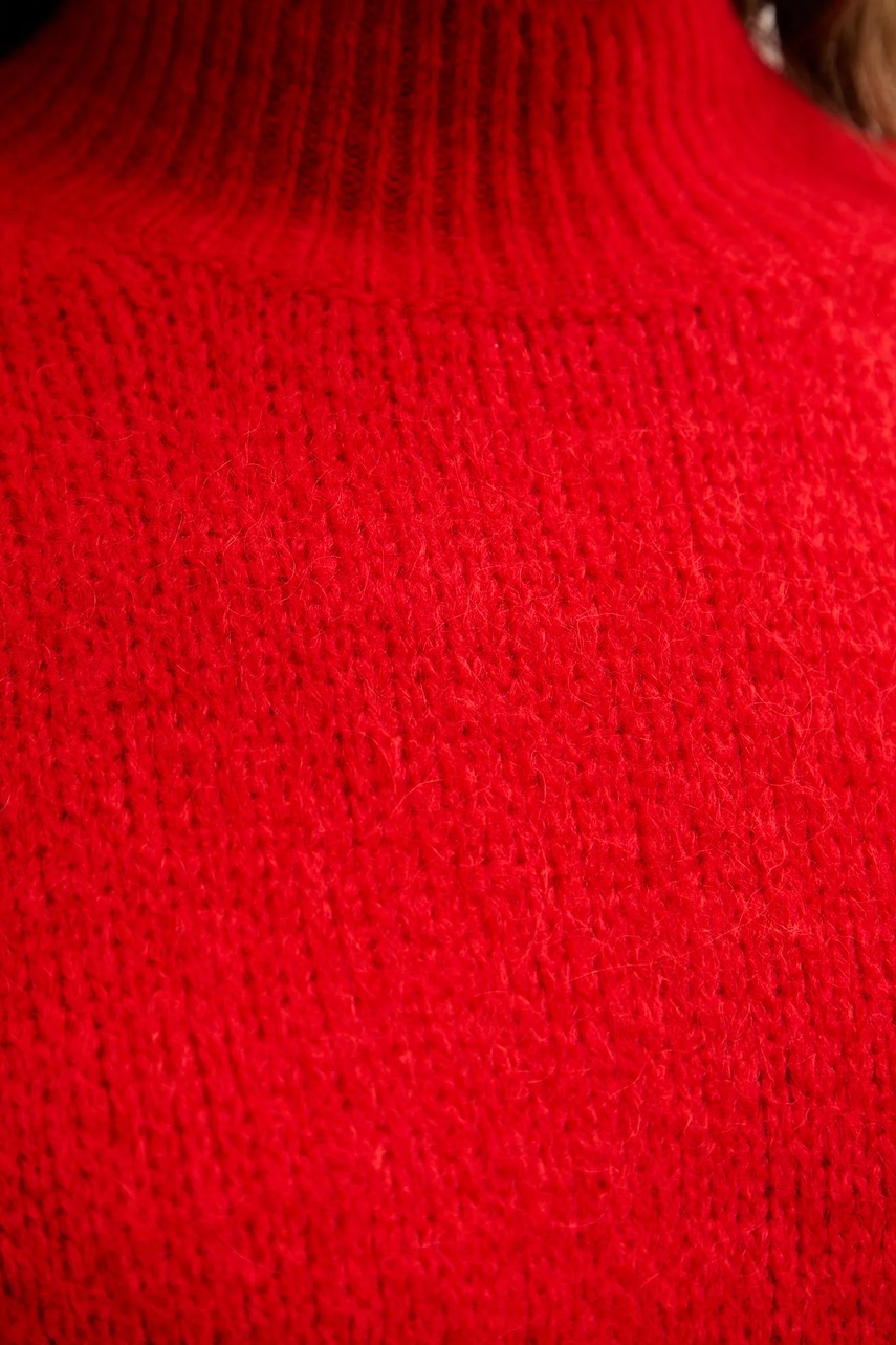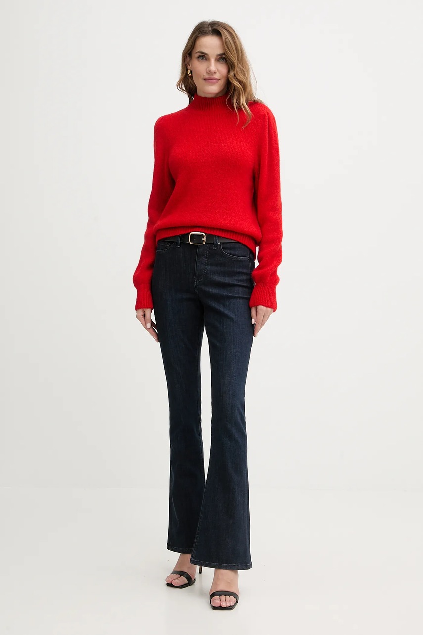 Morgan sweter z dodatkiem wełny damski kolor czerwony z golfem MLEONAR