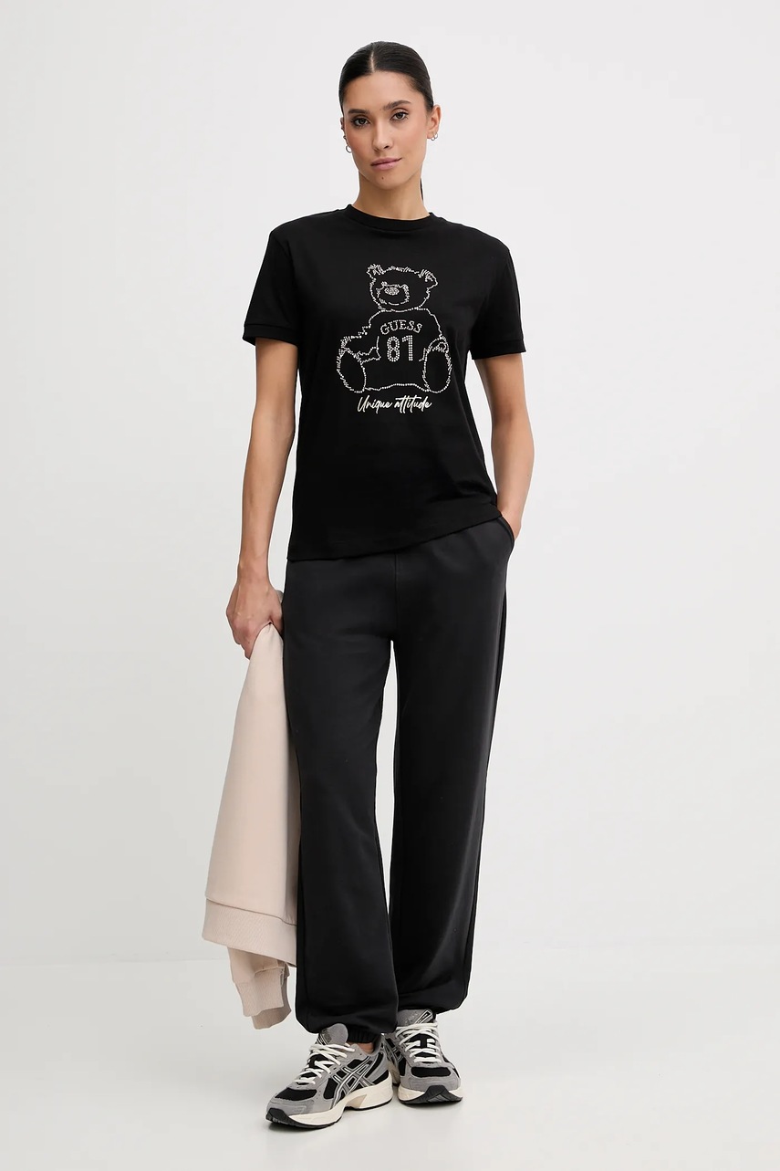Guess t-shirt bawełniany damski kolor czarny V5BI16 K8FQ4