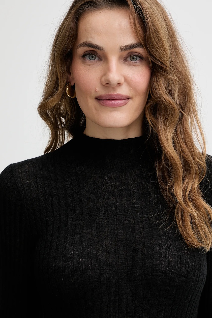 BOSS Orange sweter z dodatkiem wełny kolor czarny lekki z półgolfem 50549391
