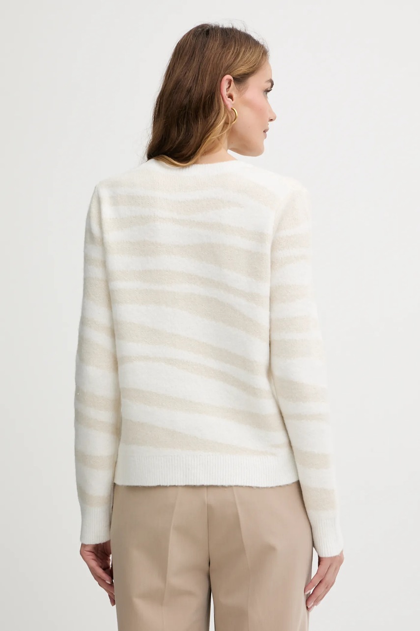 - Sweter w fasonie regular zapewnia wygodę i uniwersalny wygląd. Delikatnie dopasowuje się do sylwetki, ale nie podkreśla jej nadmiernie. Klasyczny i prosty, sprawdzi się zarówno w eleganckich, jak i casualowych stylizacjach.