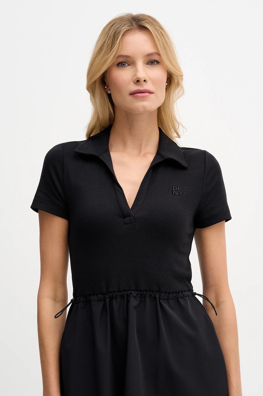 Dkny sukienka kolor czarny midi rozkloszowana DJ5D9139