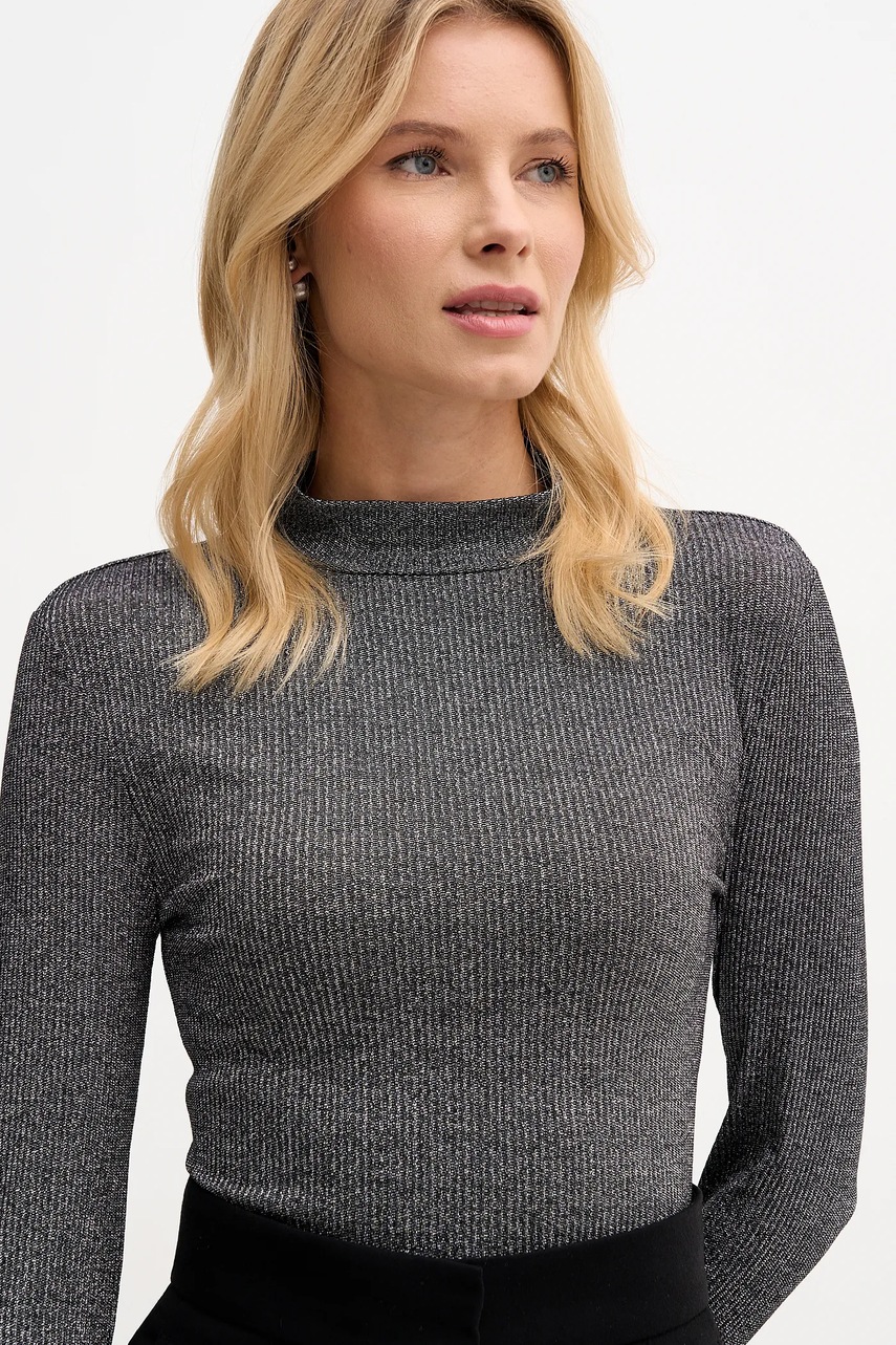 Tommy Hilfiger longsleeve damskie kolor szary z półgolfem WW0WW49391