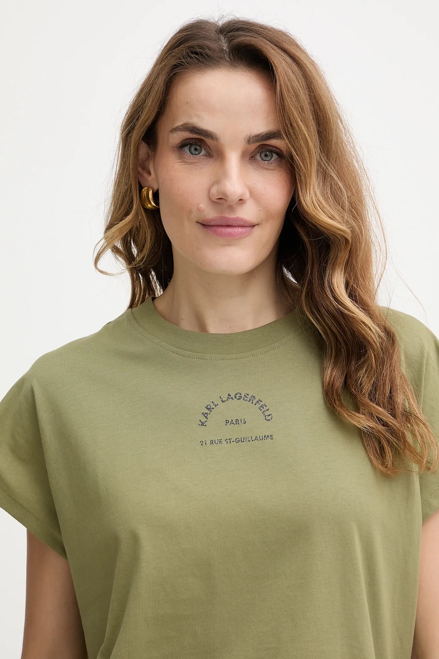 Karl Lagerfeld t-shirt bawełniany damski kolor zielony B1W17032