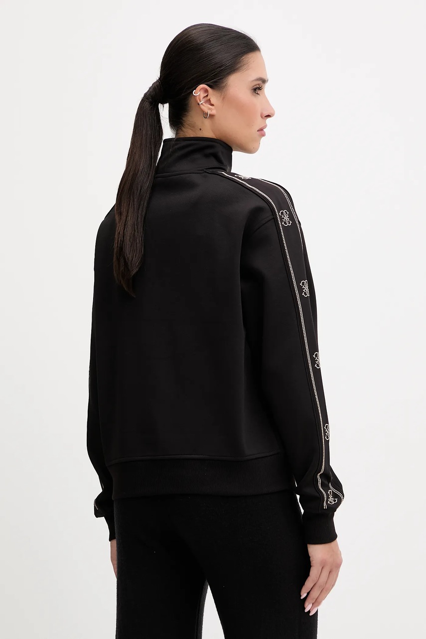 Guess bluza OCTAVIA damska kolor czarny z kapturem z aplikacją V5BQ15 KCX22