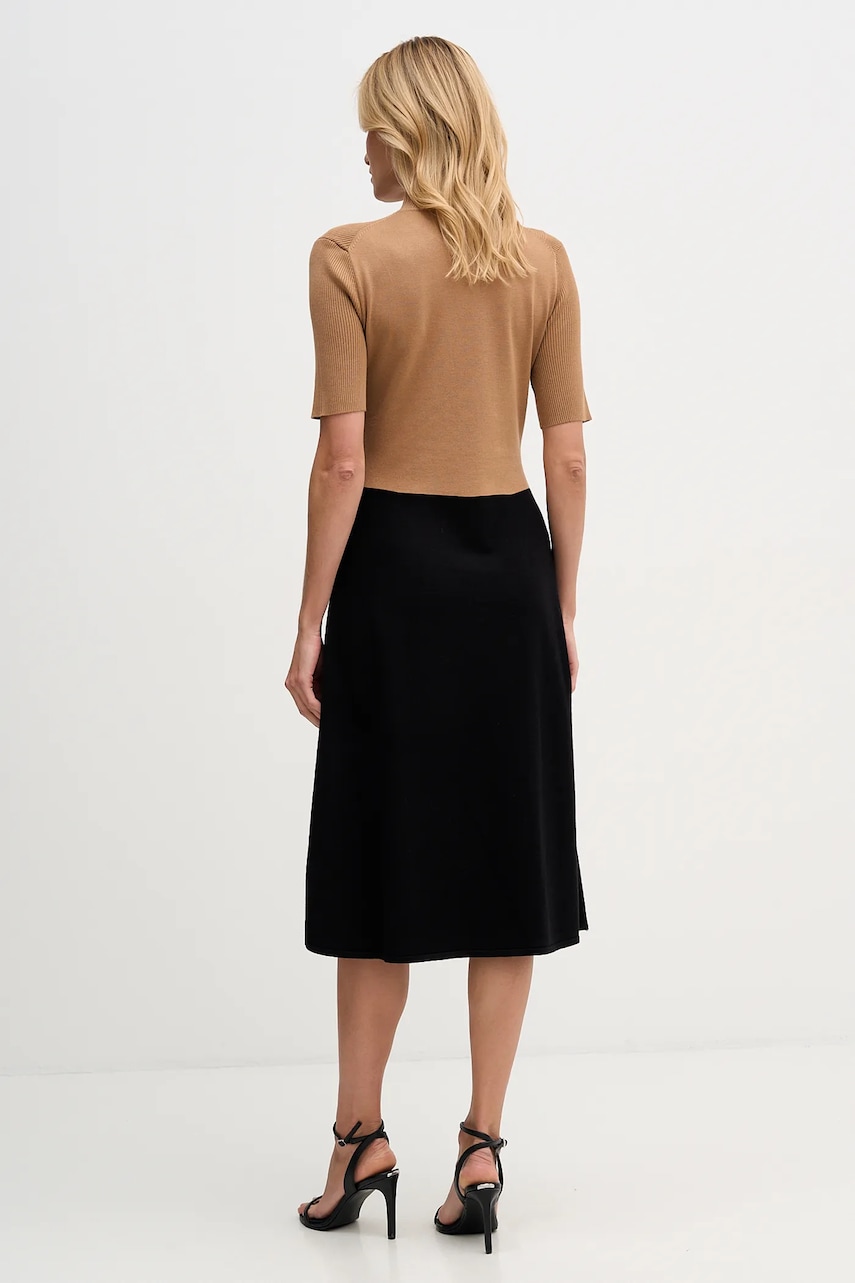 Dkny sukienka kolor brązowy midi rozkloszowana DD5D5150
