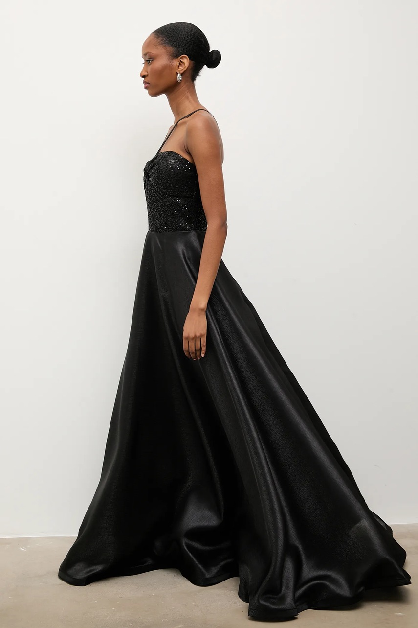 Answear.LAB sukienka kolor czarny maxi rozkloszowana