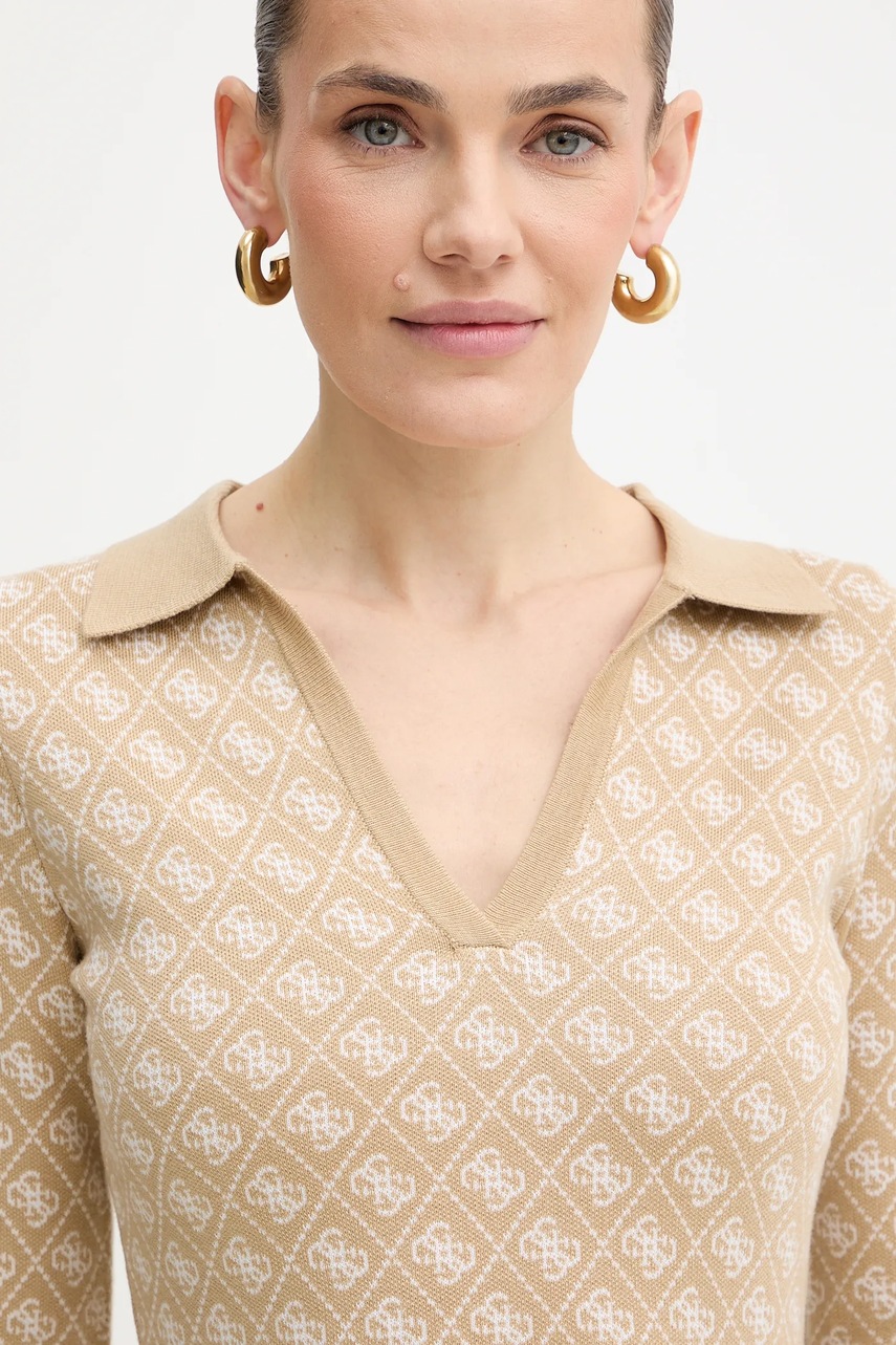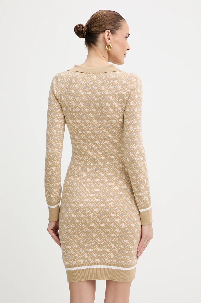 Guess sukienka z domieszką wełny AUBREY kolor beżowy mini dopasowana W5BK25 Z3JD2