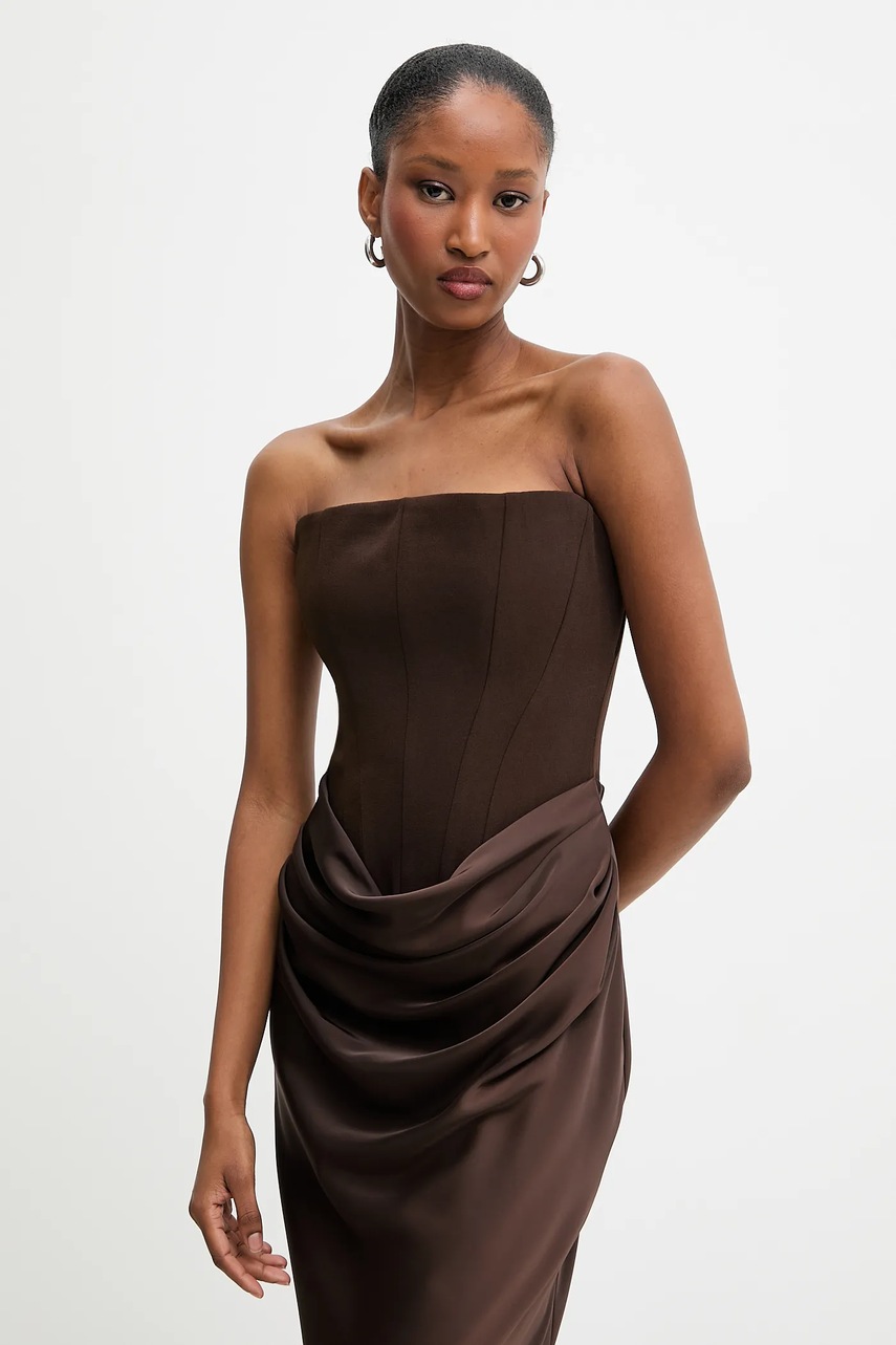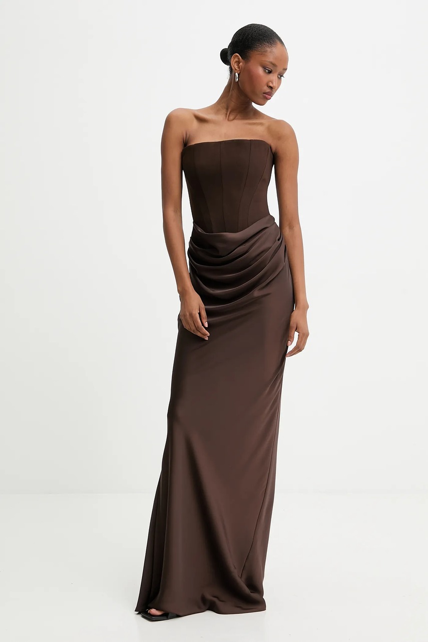 Answear.LAB sukienka kolor brązowy maxi dopasowana