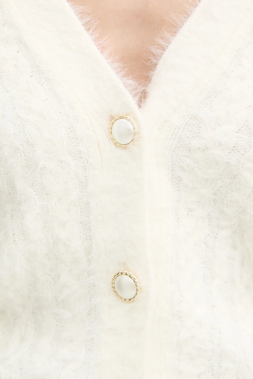- Kardigan w fasonie regular zapewnia wygodę i uniwersalny wygląd. Delikatnie dopasowuje się do sylwetki, ale nie podkreśla jej nadmiernie. Klasyczny i prosty, sprawdzi się zarówno w eleganckich, jak i casualowych stylizacjach.