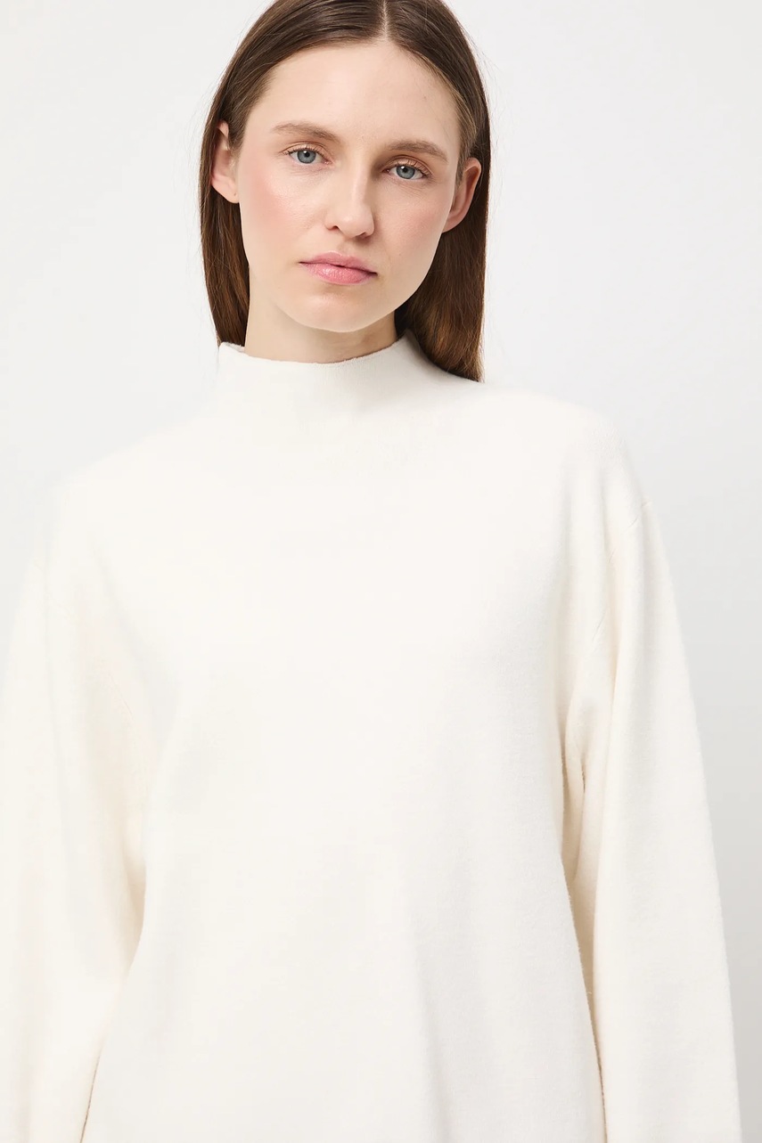 - Sweter w fasonie oversize zapewnia komfort i swobodę ruchów. Pasuje do różnych stylów, podkreślając casualowy charakter stylizacji.