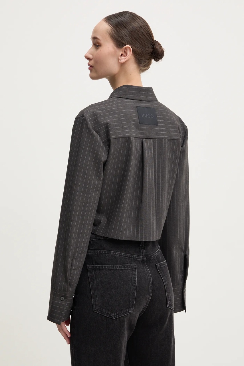 HUGO koszula damska kolor szary regular z kołnierzykiem klasycznym 50531549