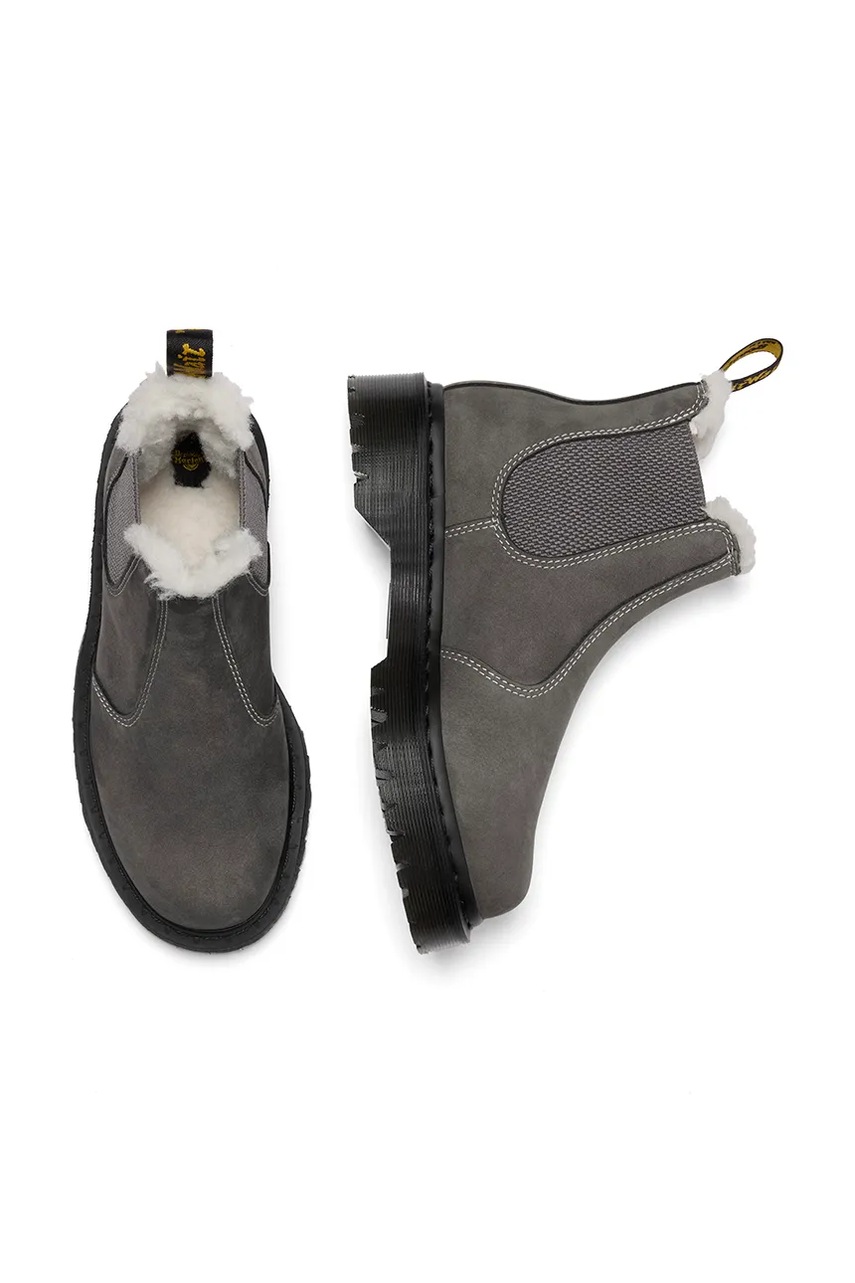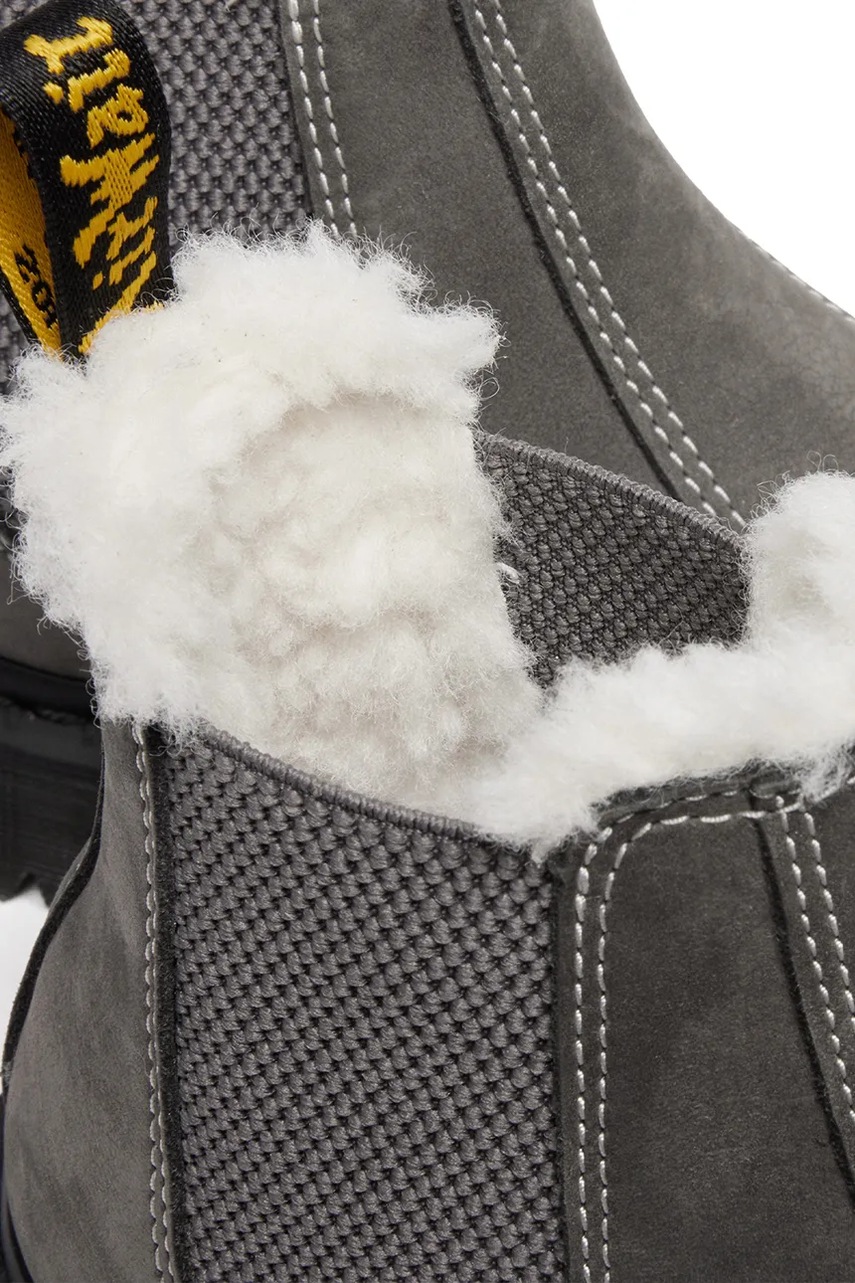 Dr. Martens sztyblety zamszowe 2976 Bex Fur Lined damskie kolor szary na platformie lekko ocieplone DM41420020