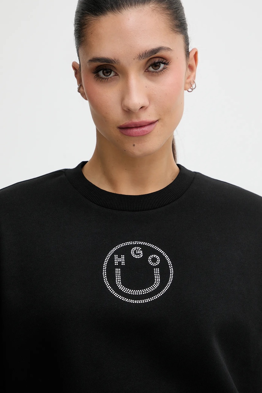 Hugo Blue bluza bawełniana damska kolor czarny z nadrukiem 50555795