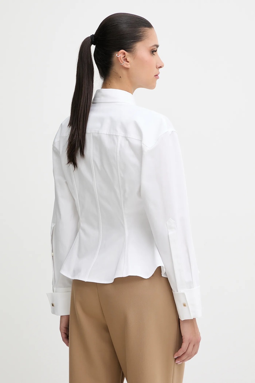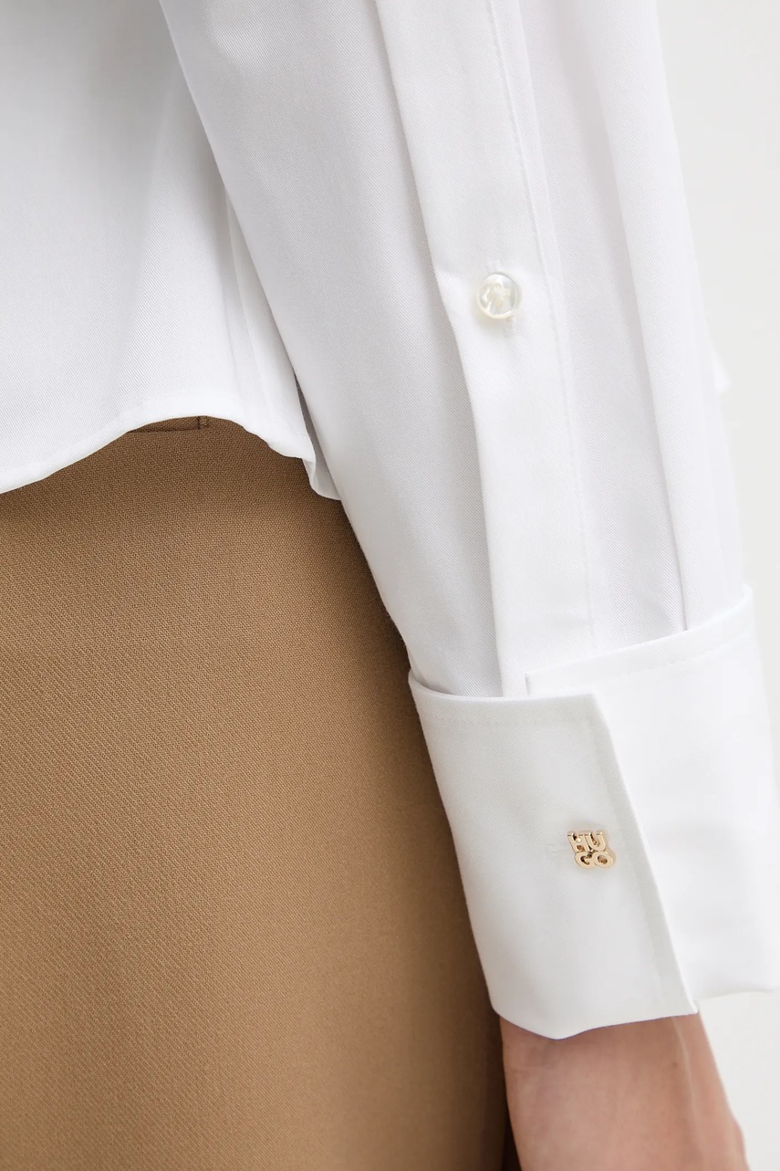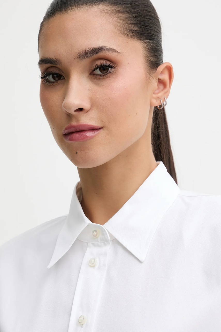 HUGO koszula bawełniana damska kolor biały slim z kołnierzykiem klasycznym 50552863
