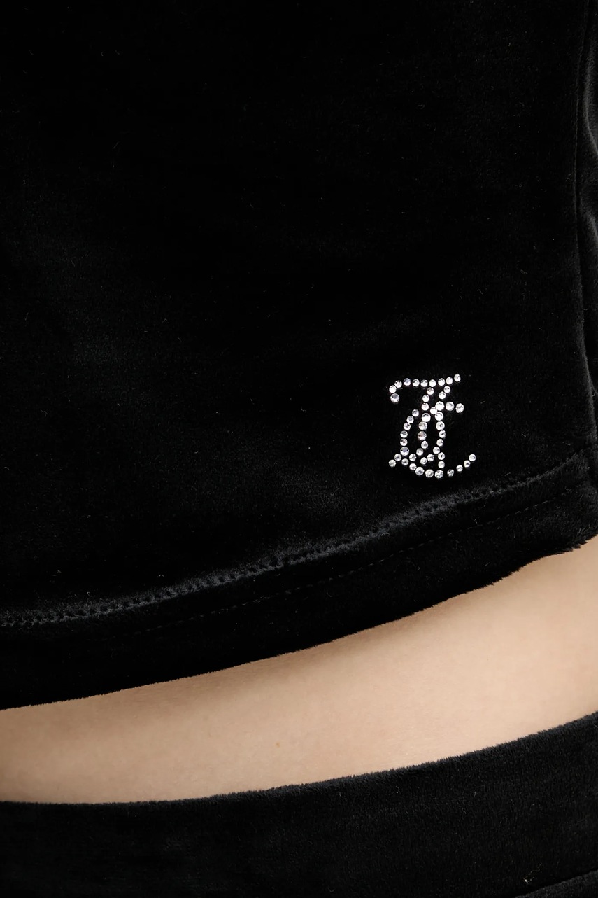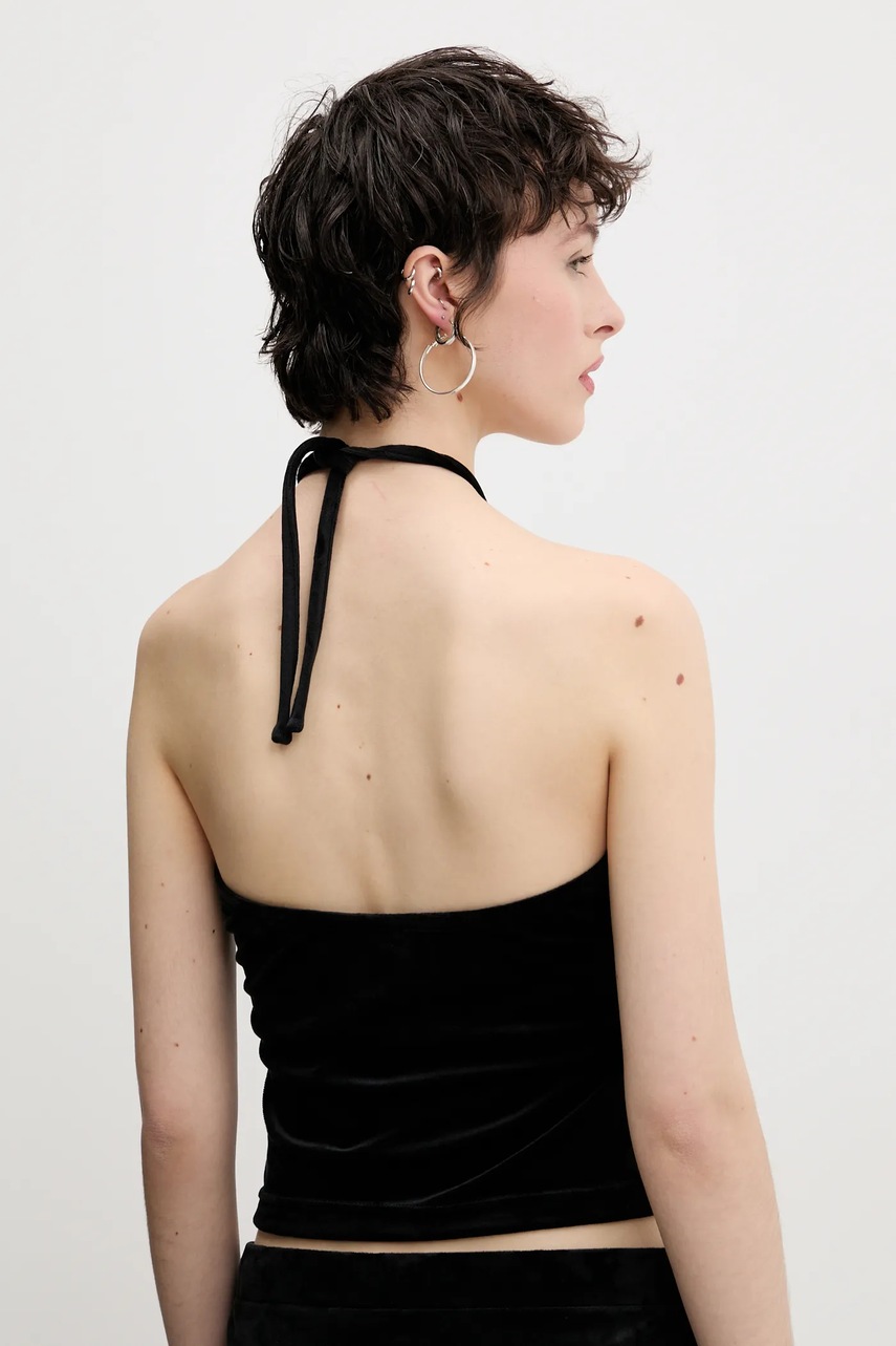 Juicy Couture top welurowy HALTER RUCHE kolor czarny dekolt hiszpański JCWCT125325